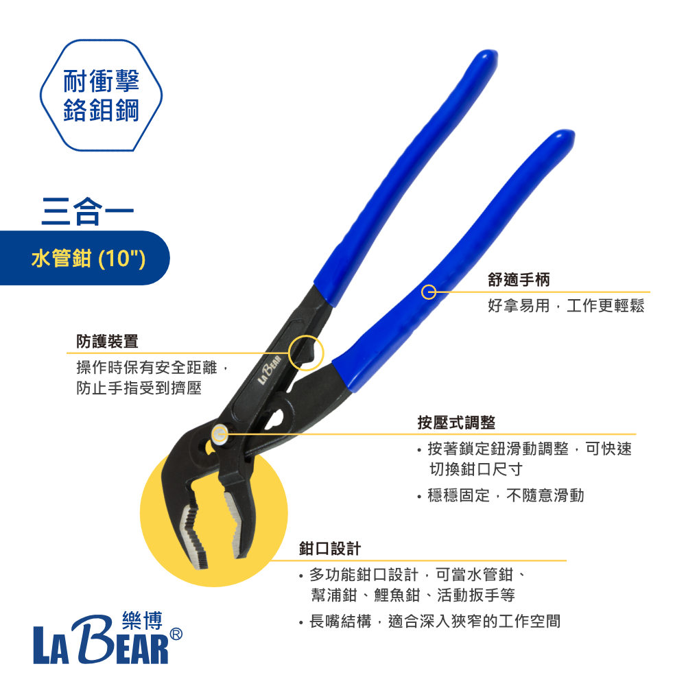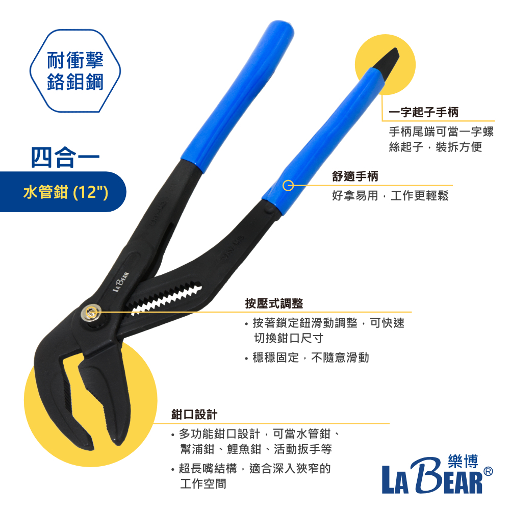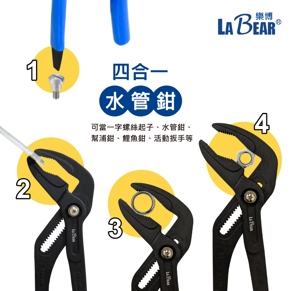 【LaBear】多功能 長嘴水管鉗 10吋/12吋 快速按鈕 3合1/4合1 幫浦鉗 鯉魚鉗 活動鉗 管子鉗 水道鉗4合1 長嘴水管鉗 12″|3合1 長嘴水管鉗 10″ToolsLaBear 樂博工具