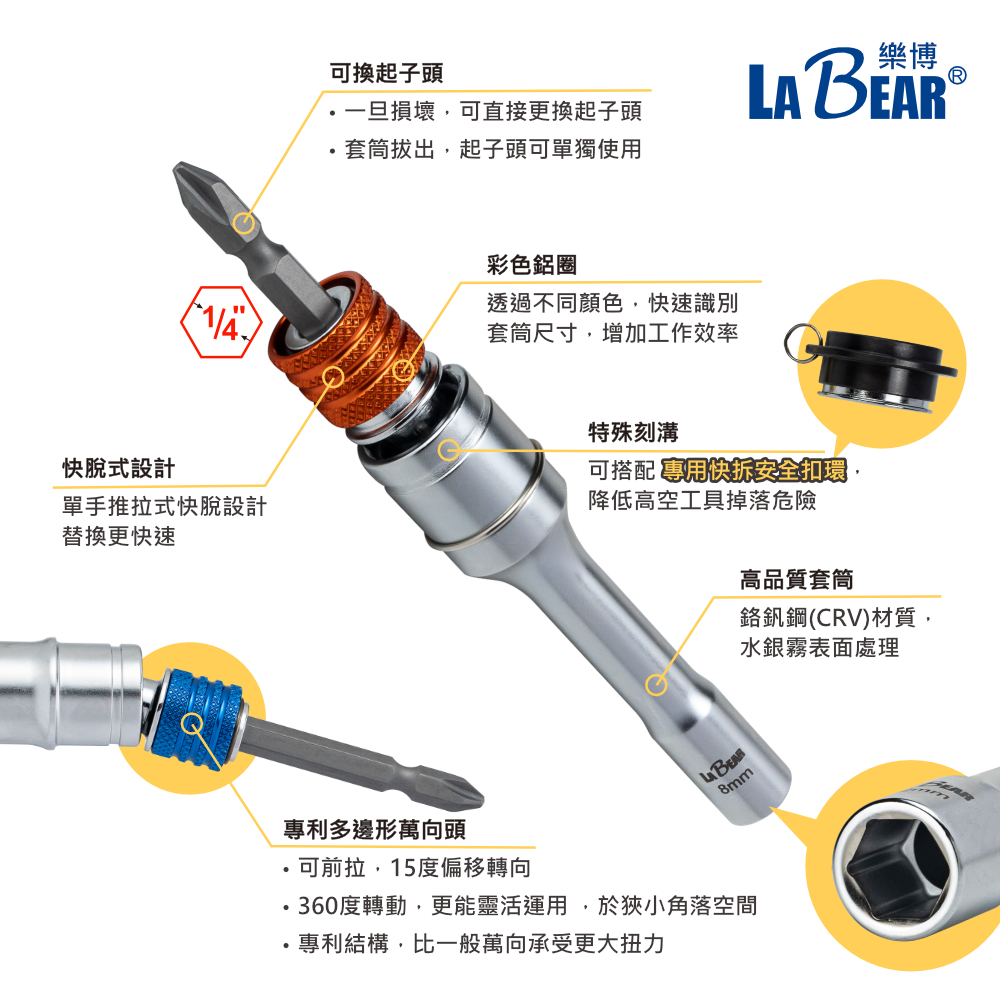 【LaBear】萬向/固定 兩用起子套筒 專屬安全環 快脫 可替換 兩用 快脫套筒 深孔套筒 長套筒 專利設計 台灣製快拆金屬安全環2件組(萬向起子套筒專用|14mm 快脫萬向兩用起子套筒|8mm 快脫萬向兩用起子套筒|10mm 快脫萬向兩用起子套筒|12mm 快脫萬向兩用起子套筒|13mm 快脫萬向兩用起子套筒|17mm 快脫萬向兩用起子套筒|19mm 快脫萬向兩用起子套筒ToolsLaBear 樂博工具