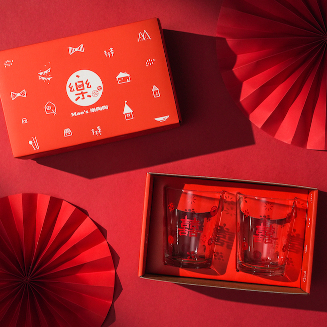 【經典再獻 復古款】囍囍玻璃杯組加購紙袋|不加購紙袋BowlsMao’s樂陶陶