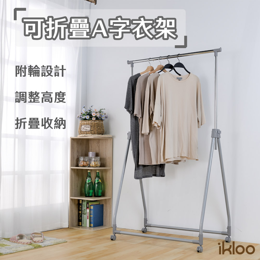 【ikloo】可折疊輕便A字衣架 附輪組 可升降 99-167CM【ikloo】可折疊輕便A字衣架 附輪組 可升降 99-167CMHangers & Pegsikloo 宜酷屋