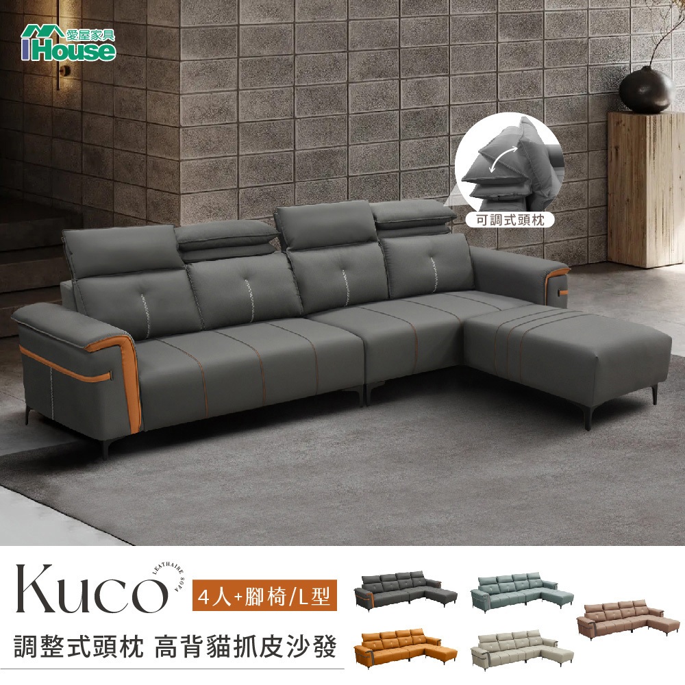 IHouse-酷可 超美型高背頭枕貓抓皮L型沙發湖水綠#10+15|清水灰#14+18|暗灰色#19+05|暮光橙#05+19SofasIHouse 愛屋家具【免組裝家具/木心板家具/工廠直營】