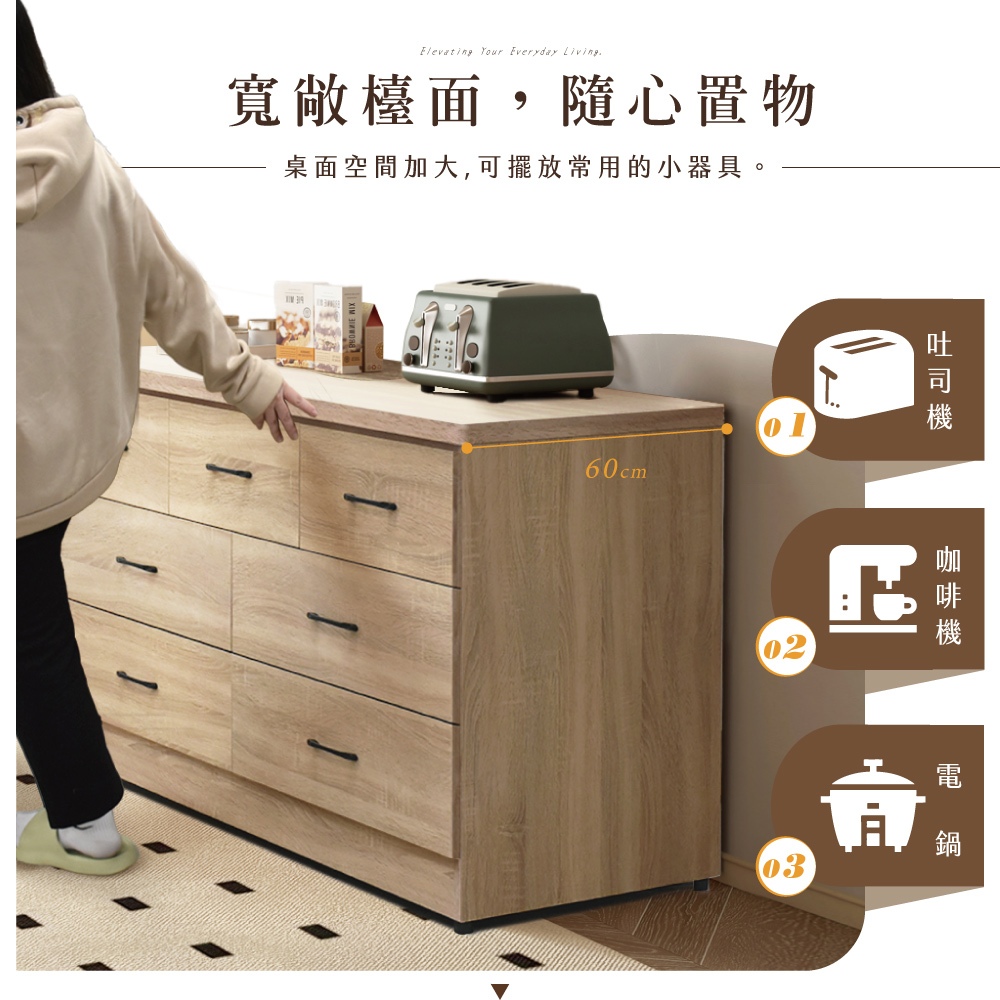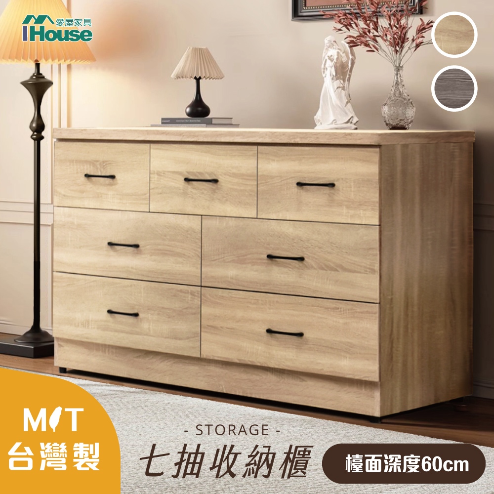 IHouse-台灣製 免組裝 木心板7抽收納櫃(斗櫃/餐桌櫃/工作桌/育嬰桌/中島桌/置物櫃)白梧桐色|梧桐色|古橡色Cupboards & CabinetsIHouse 愛屋家具【免組裝家具/木心板家具/工廠直營】
