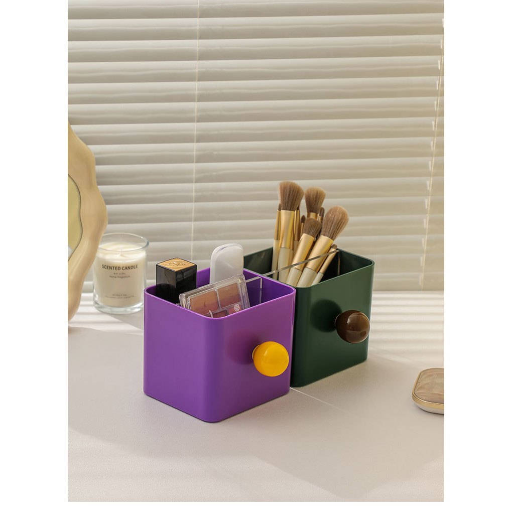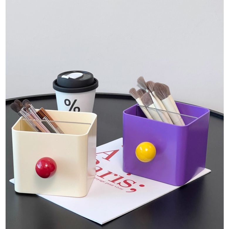 撞色分隔桌面收納盒 筆桶 刷具桶 收納桶 分類收納筒 桌上置物架 置物盒 文具整理盒奶油黃|葡萄紫|軍綠Desk OrganizersiPlus+保護傘延長線品牌館