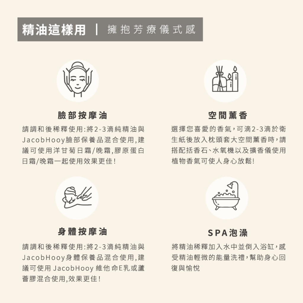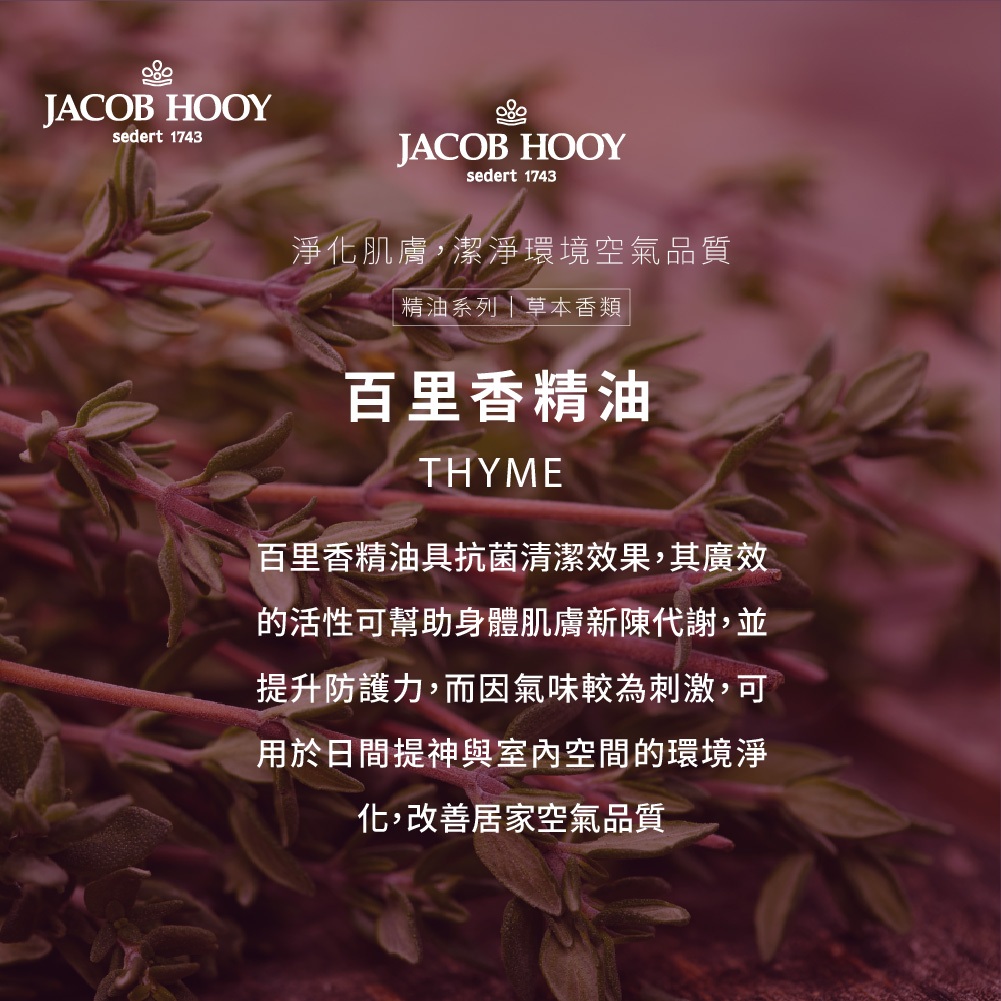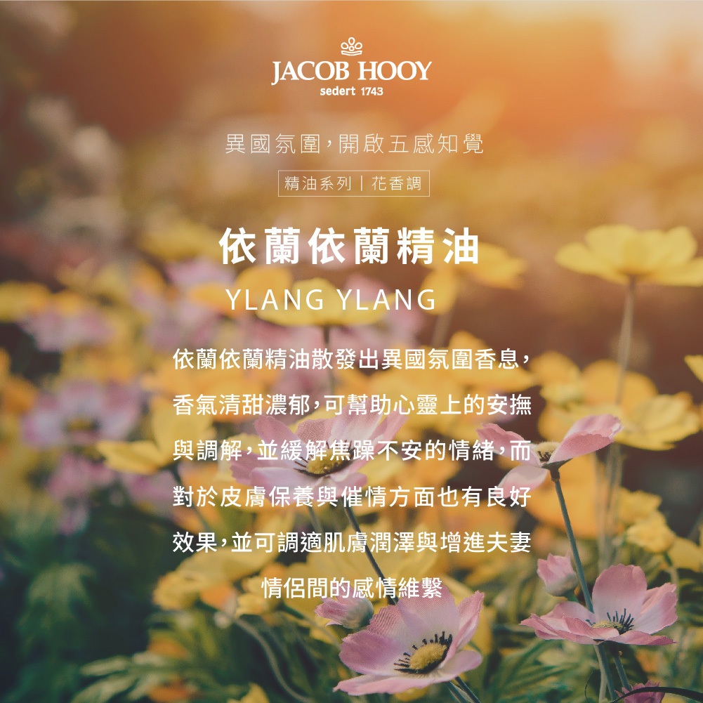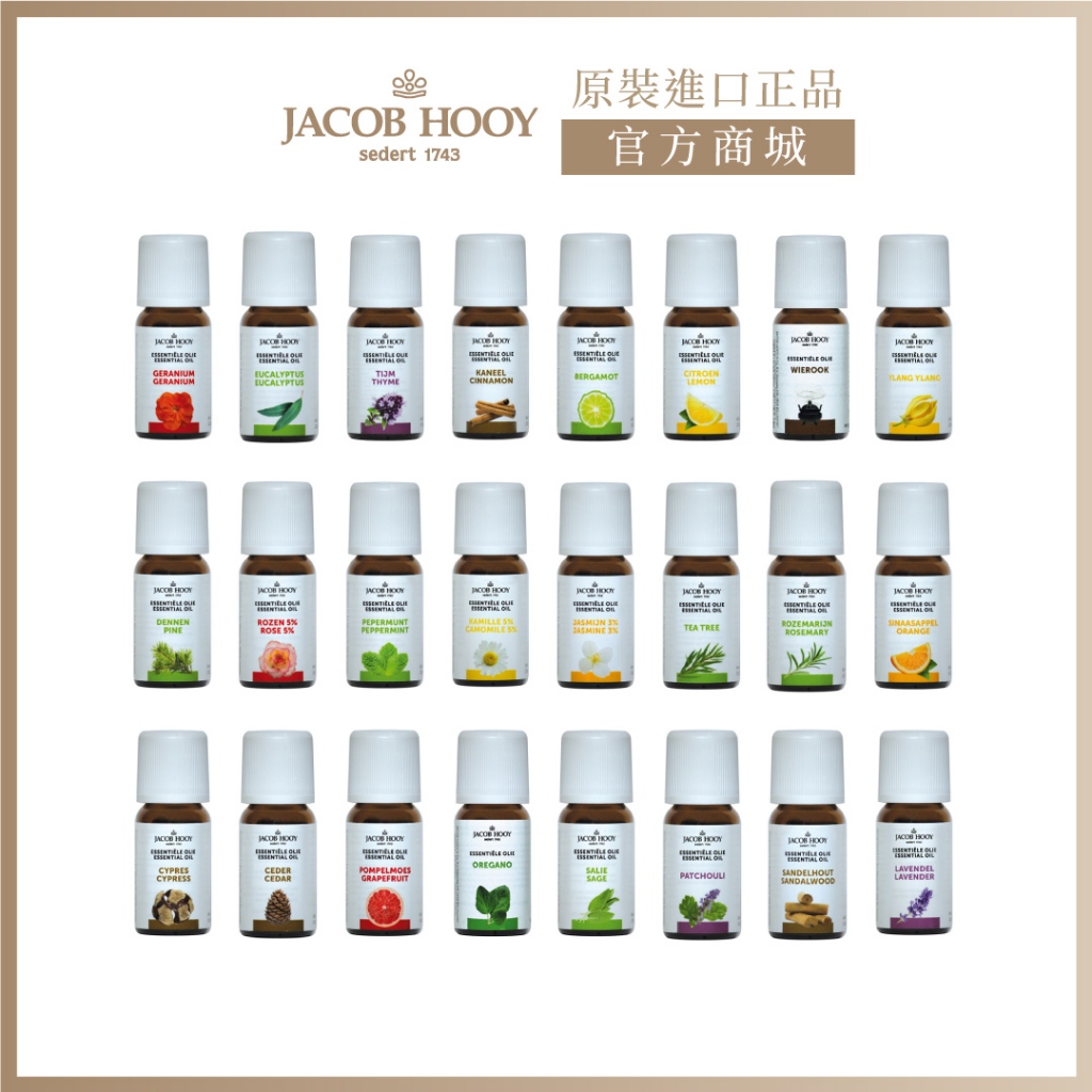 JACOB HOOY 精油【任選兩件5折】100%純精油 空間擴香 按摩 泡澡 紓壓 驅蟲 消毒 調情 潤膚 水氧機尤加利|百里香|甜橙|薄荷|檸檬|羅勒|玫瑰木|松脂|迷迭香|杜松|薰衣草|檸檬草|葡萄柚|肉桂|洋甘菊|雪松|絲柏|茶樹|奧勒岡|天竺葵|依蘭|茉莉3%|檀香|廣藿香|乳香|佛手柑|鼠尾草Essential OilsJACOB HOOY 雅歌布霍伊 台灣官方旗艦店