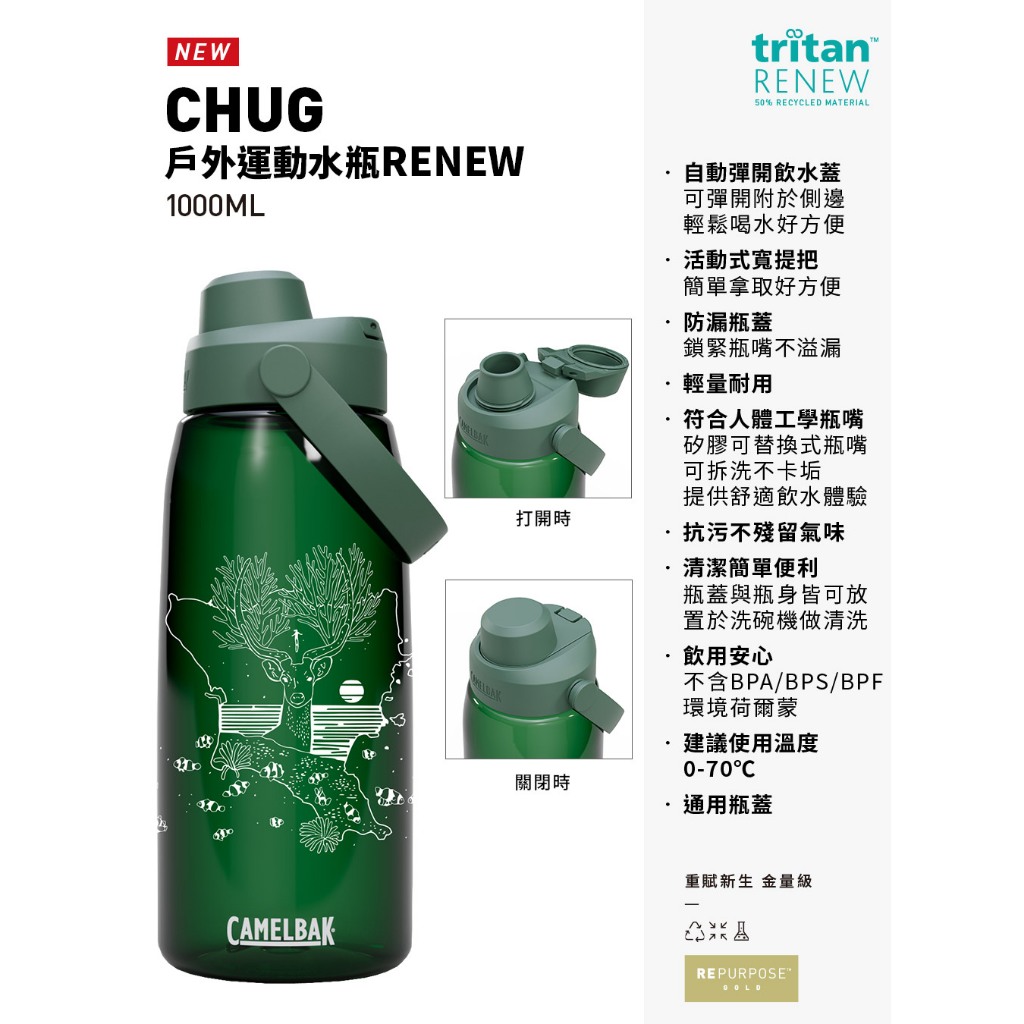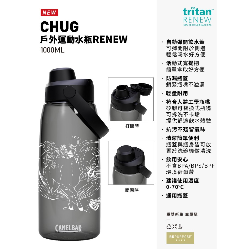 【CAMELBAK】離島記憶-1000ml Chug戶外運動水瓶RENEW(3款)-水壺 運動水瓶|CBEB1NGD16朝泉映月-森林綠|飛翔綻放-晶透白|蘭嶼山羊-炭黑Water Bottles & AccessoriesGOHIKING戶外用品專賣店