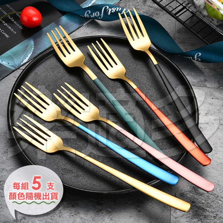 韓式304不鏽鋼長柄餐叉5支入 SIN6033 餐具 叉子5支/組;隨機出貨CutleriesGood Go 好好買