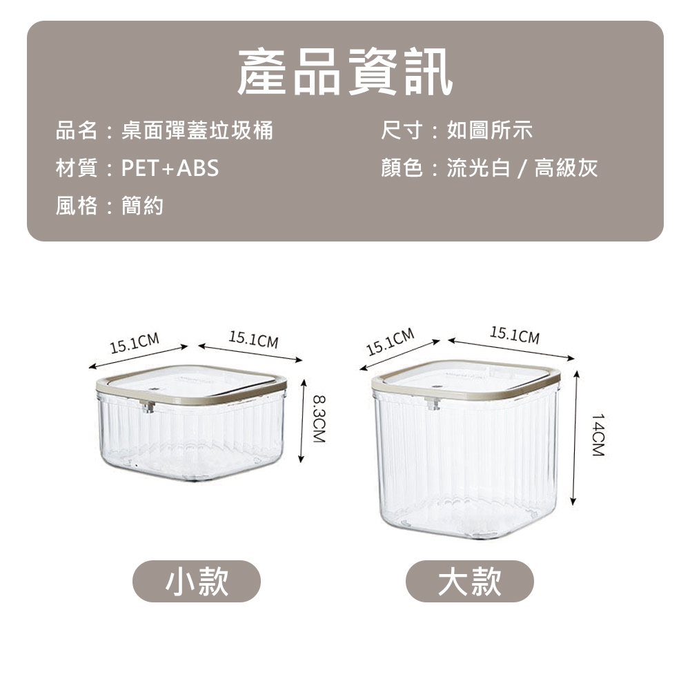 【桌面彈蓋垃圾桶】桌面垃圾桶 桌面收納盒 迷你垃圾桶 按壓垃圾桶 迷你桌面垃圾桶 彈蓋垃圾桶小款,流光白|小款,高級灰|大款,流光白|大款,高級灰Desk OrganizersH MOD髮摩 品牌旗艦館