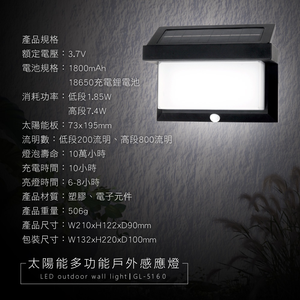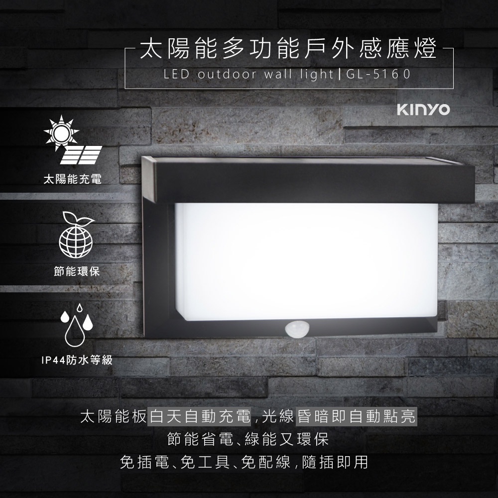 〖KINYO〗 太陽能多功能戶外感應燈 (GL) 太陽能 IP44防水 800流明 |戶外 庭園燈 陽台GL5160 戶外感應燈KINYO官方旗艦店_家電館