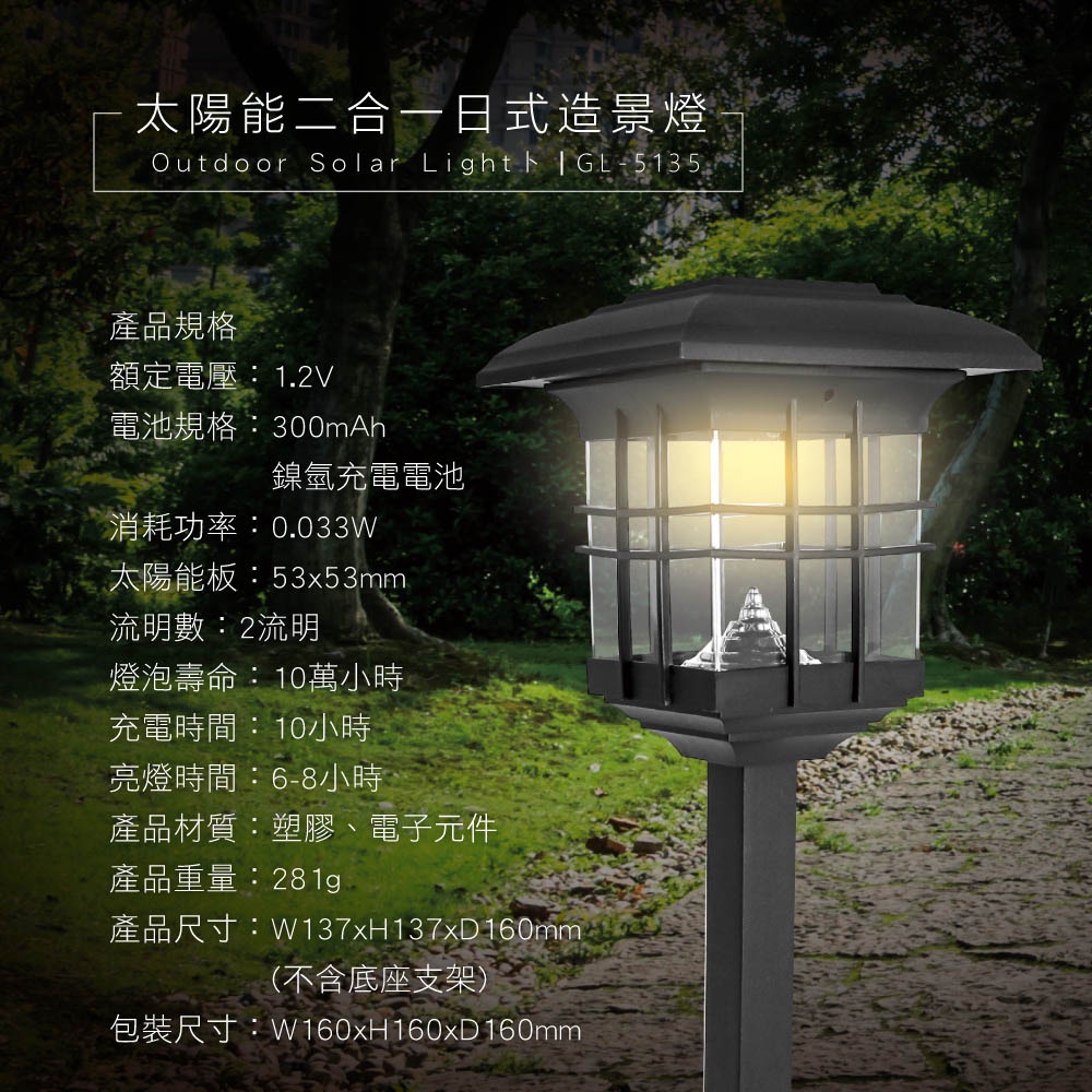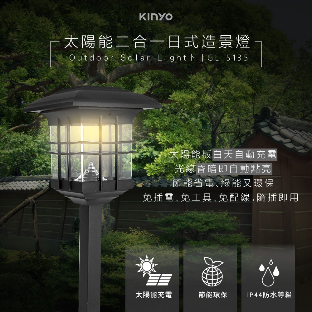 〖KINYO〗 太陽能二合一日式造景燈 (GL) 太陽能 IP44防水 燈泡10萬小時壽命 |戶外 庭園燈GL5135 日式造景燈KINYO官方旗艦店_家電館