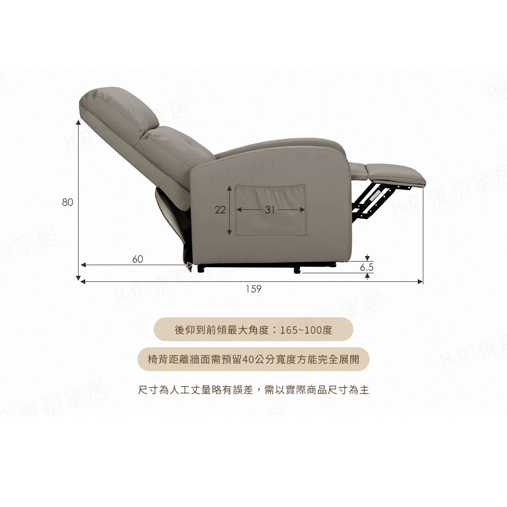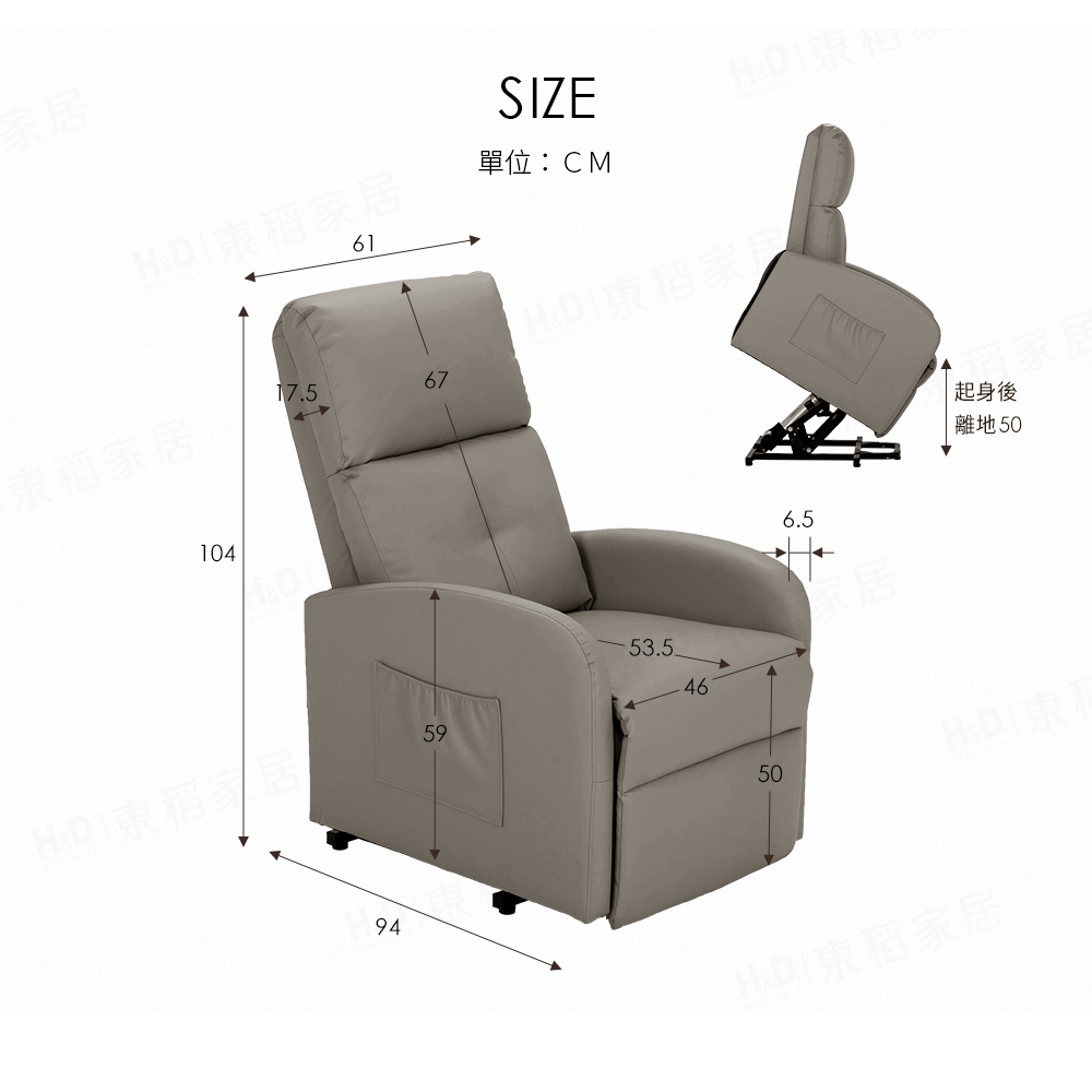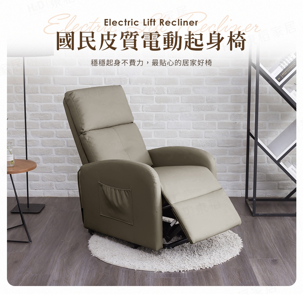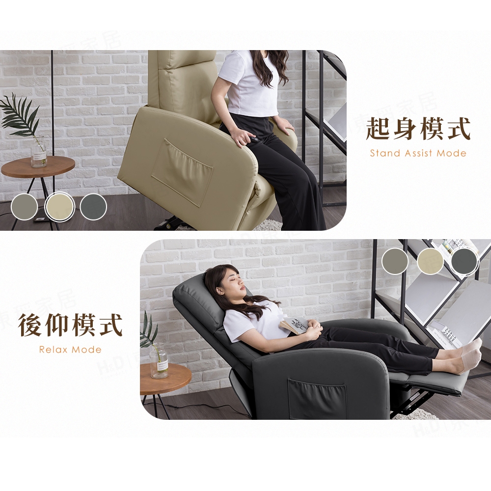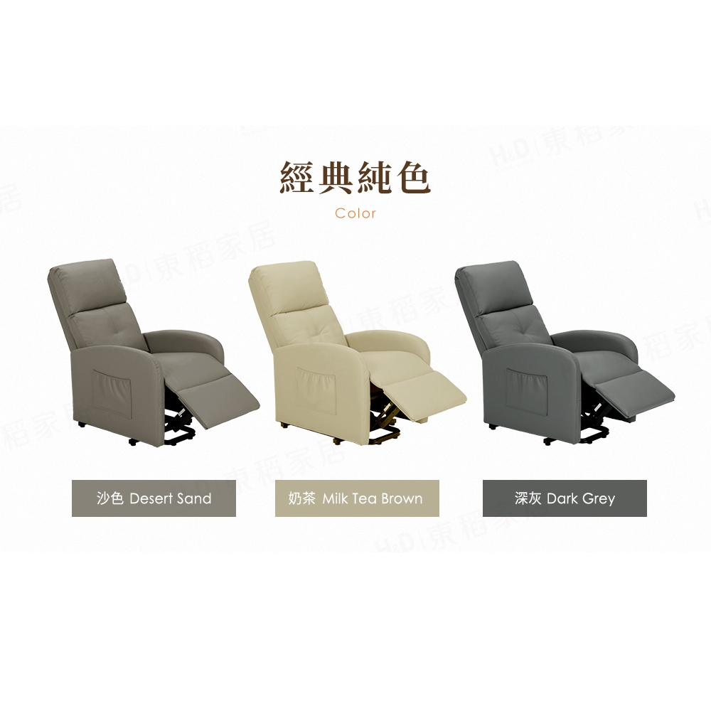 【H&D東稻家居】國民皮質起身電動椅 單人沙發 電動躺椅 懶人沙發深灰|沙色|奶茶SofasH&D東稻家居