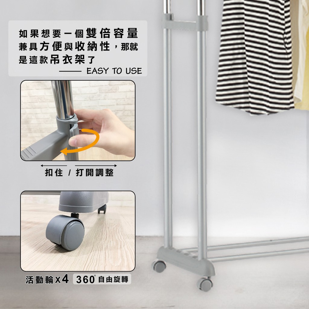 【僅限宅配】台製衣架系列|雙桿伸縮衣架(附輪) 曬衣架 吊衣桿 吊衣架 掛衣桿 衣桿架 衣架【僅限宅配】台製衣架系列|雙桿伸縮衣架(附輪) 曬衣架 吊衣桿 吊衣架 掛衣桿 衣桿架 衣架Clotheslines & Drying RacksKIWISH居家生活