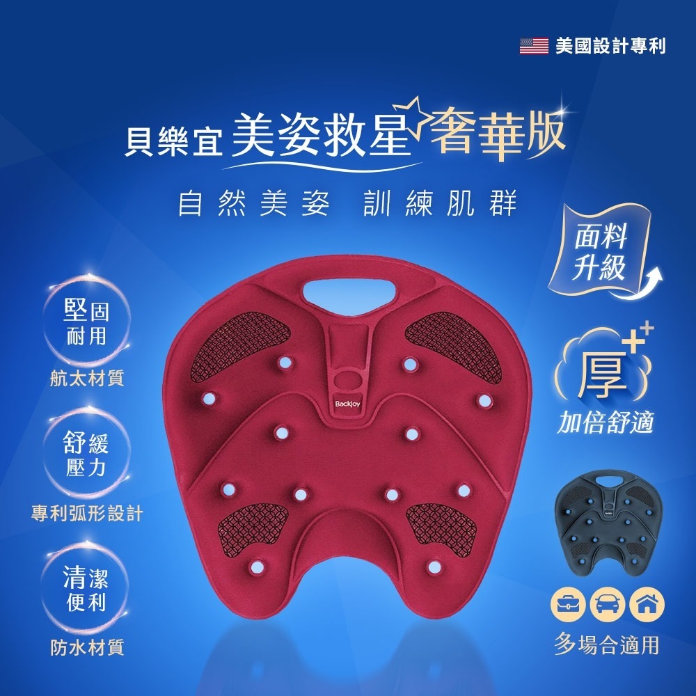 【BackJoy 貝樂宜】美姿救星/坐墊 奢華版(午夜藍/酒紅)|台隆手創館酒紅|午夜藍CushionsHANDS台隆手創館|官方旗艦店