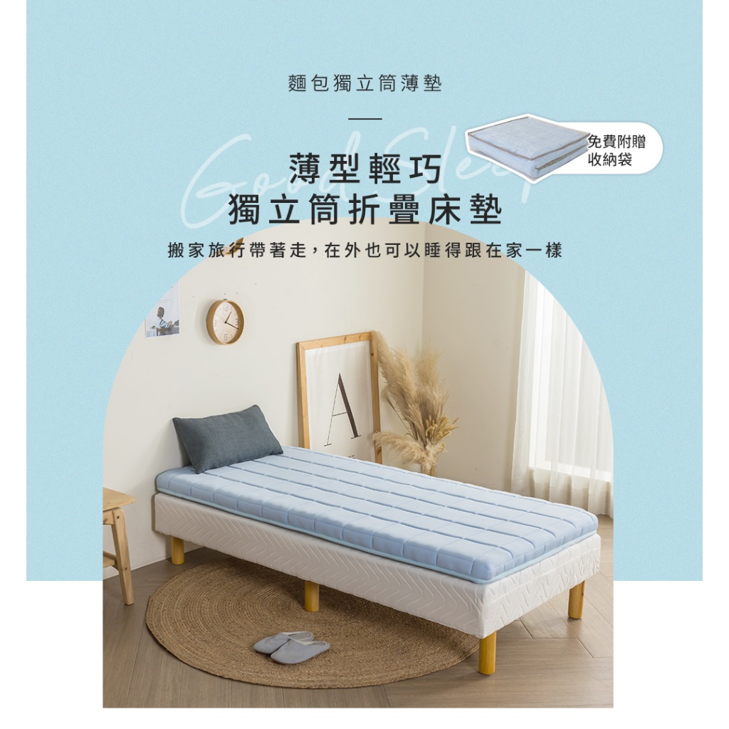 【H&D 東稻家居】麵包獨立筒薄墊8cm-3尺 台灣製造 收納床墊 露營 薄型床墊