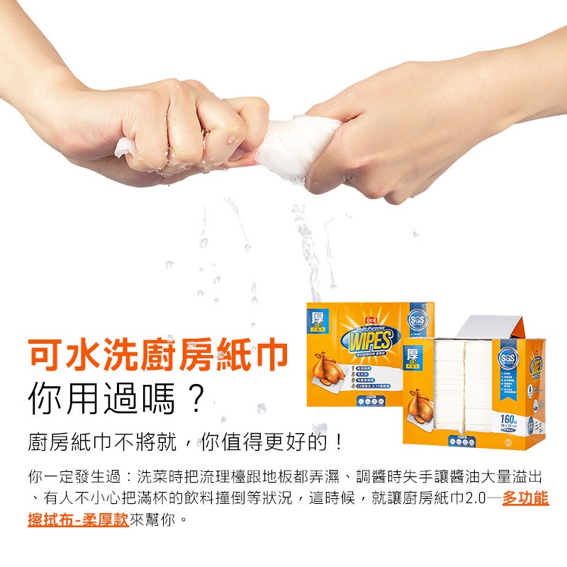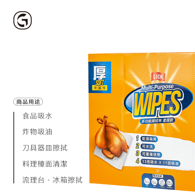 力可潔 LICK【柔厚款擦拭布】(160張/盒) 鉅瑋 拋棄式抹布 摺疊 免洗抹布 廚房抹布 擦拭紙 吸油布 布紙巾160張/盒Tissue & Paper TowelsGShop|鉅瑋官方直營店