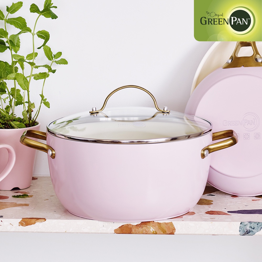 GreenPan 鑽石陶瓷塗層不沾雙耳湯鍋 PADOVA 24cm 嫩頰粉 含蓋 不挑爐具/IH爐適用/天然無毒