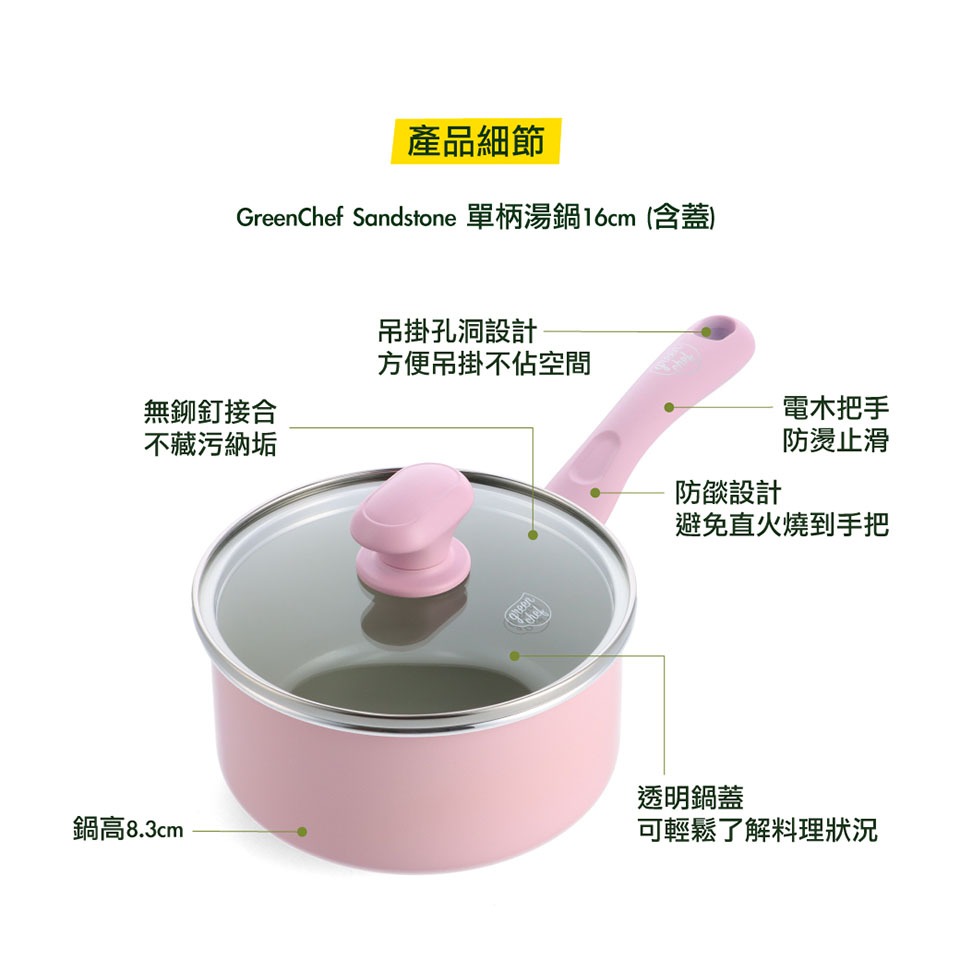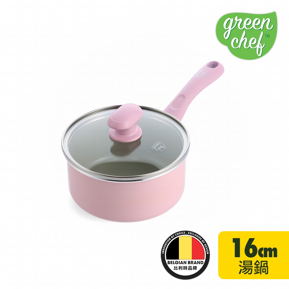 GreenChef 鑽石陶瓷塗層不沾單柄湯鍋 Sandstone 16cm 含蓋 櫻花粉 不挑爐具/IH爐適用/天然無毒【單件】單柄湯鍋16cm(含蓋/櫻花粉)PansGreenPan 官方旗艦店