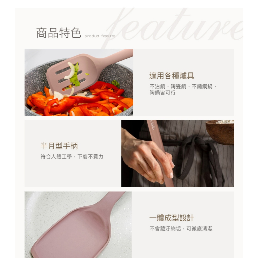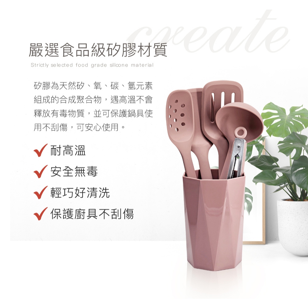 【CUOCO】北歐半月柄全矽膠廚具6件組-粉色(炒鏟+煎鏟+湯勺+漏勺+料理夾+廚具筒)【CUOCO】北歐半月柄全矽膠廚具6件組-粉色(炒鏟+煎鏟+湯勺+漏勺+料理夾+廚具筒)Spatulas & Cooking TweezersGu.Kang 固鋼官方旗艦店