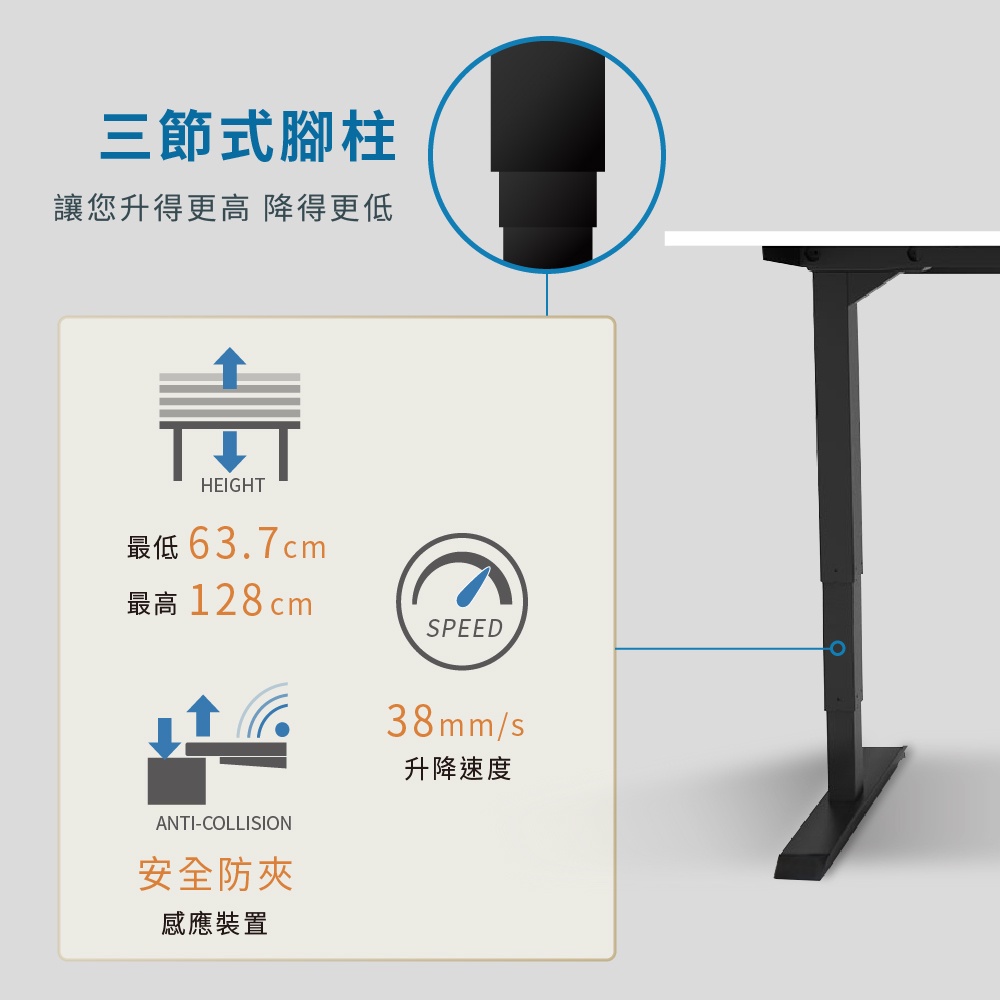 【FUNTE】Prime 三節式電動升降桌架 / 腳架 / 桌腳(無桌板)三色可選|品牌旗艦店黑色|灰色|白色Desks & TablesFUNTE 升降桌|品牌旗艦店