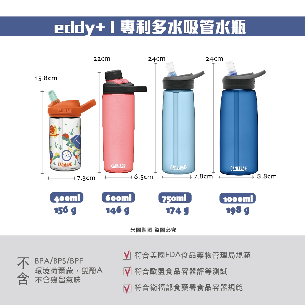 現貨免運I CAMELBAK 750ml eddy+ Renew Tritan 專利多水吸管水瓶炭黑|牛津藍|透藍|橄欖綠|日出橘|晶透白Water Bottles & Accessoriesimitu 米圖
