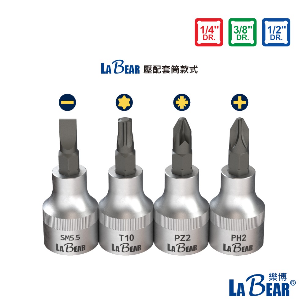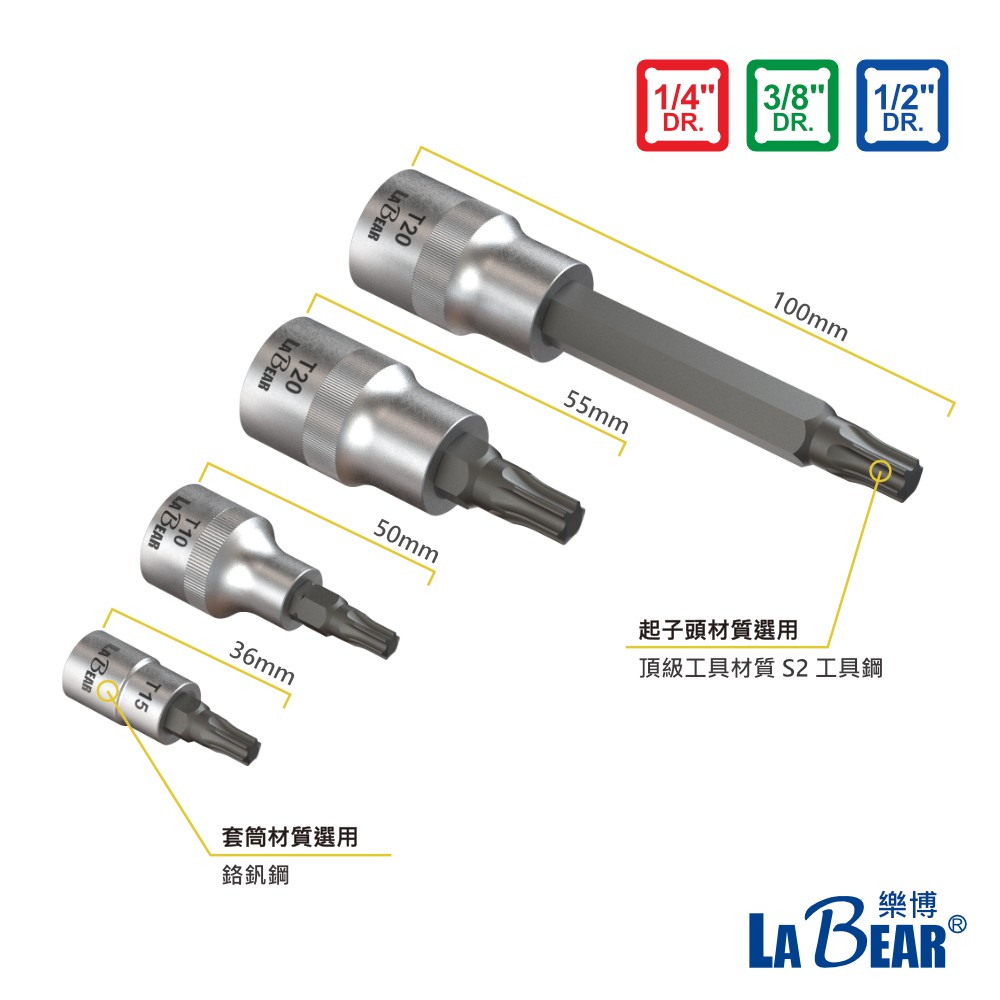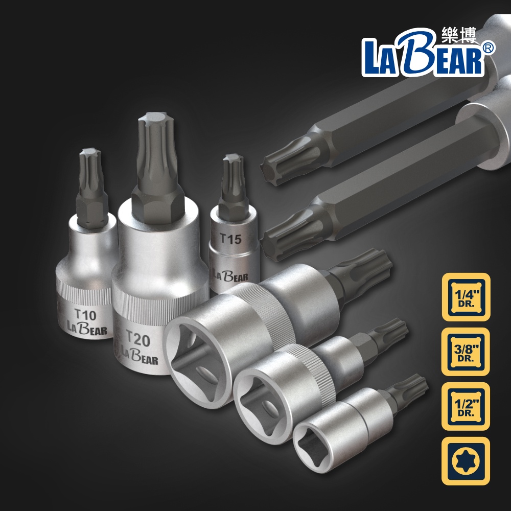 【LaBear】星型壓配套筒 1/4″, 3/8″, 1/2″ Dr. 2分/3分/4分 梅花旋具套 旋具頭 起子套筒1/4″ 兩分 T8|1/4″ 兩分 T9|1/4″ 兩分 T10|1/4″ 兩分 T15|1/4″ 兩分 T20|1/4″ 兩分 T25|1/4″ 兩分 T27|3/8″ 三分 T25|3/8″ 三分 T40|1/2″ 四分 T27 x 55mm|1/2″ 四分 T60 x 55mm|1/4″ 兩分 T40|1/2″ 四分 T20 x 55mm|1/2″ 四分 T25 x 55mm|3/8″ 三分 T27|3/8″ 三分 T50|1/2″ 四分 T25 x 100mm|1/2″ 四分 T27 x 100mm|1/2″ 四分 T40 x 100mm|1/4″ 兩分 T30|1/2″ 四分 T45 x 55mm|1/2″ 四分 T30 x 100mm|3/8″ 三分 T20|1/2″ 四分 T30 x 55mm|1/2″ 四分 T20 x 100mm|1/2″ 四分 T45 x 100mm|3/8″ 三分 T30|3/8″ 三分 T45|1/2″ 四分 T40 x 55mm|1/2″ 四分 T55 x 55mm|1/2″ 四分 T50 x 55mmToolsLaBear 樂博工具
