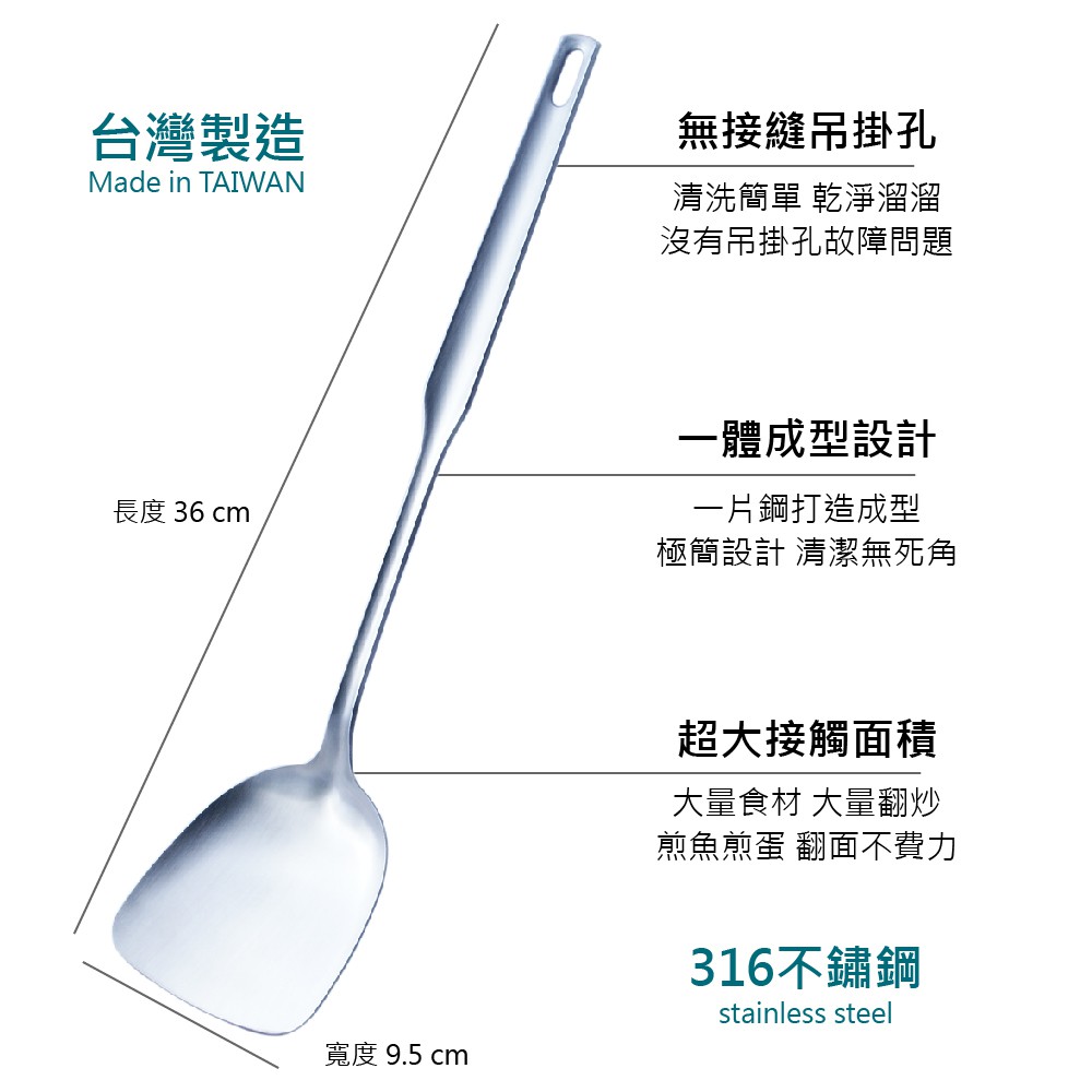 《掌廚HiCHEF》316不鏽鋼 中華匙(鍋鏟)《掌廚HiCHEF》316不鏽鋼 中華匙(鍋鏟)Spatulas & Cooking TweezersHiCHEF_掌廚鍋具_WUSTHOF德國三叉牌_WOLL德國歐爾_總代理
