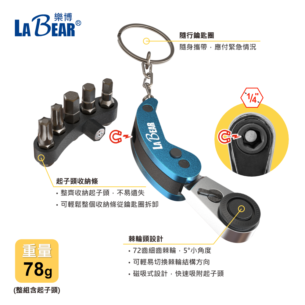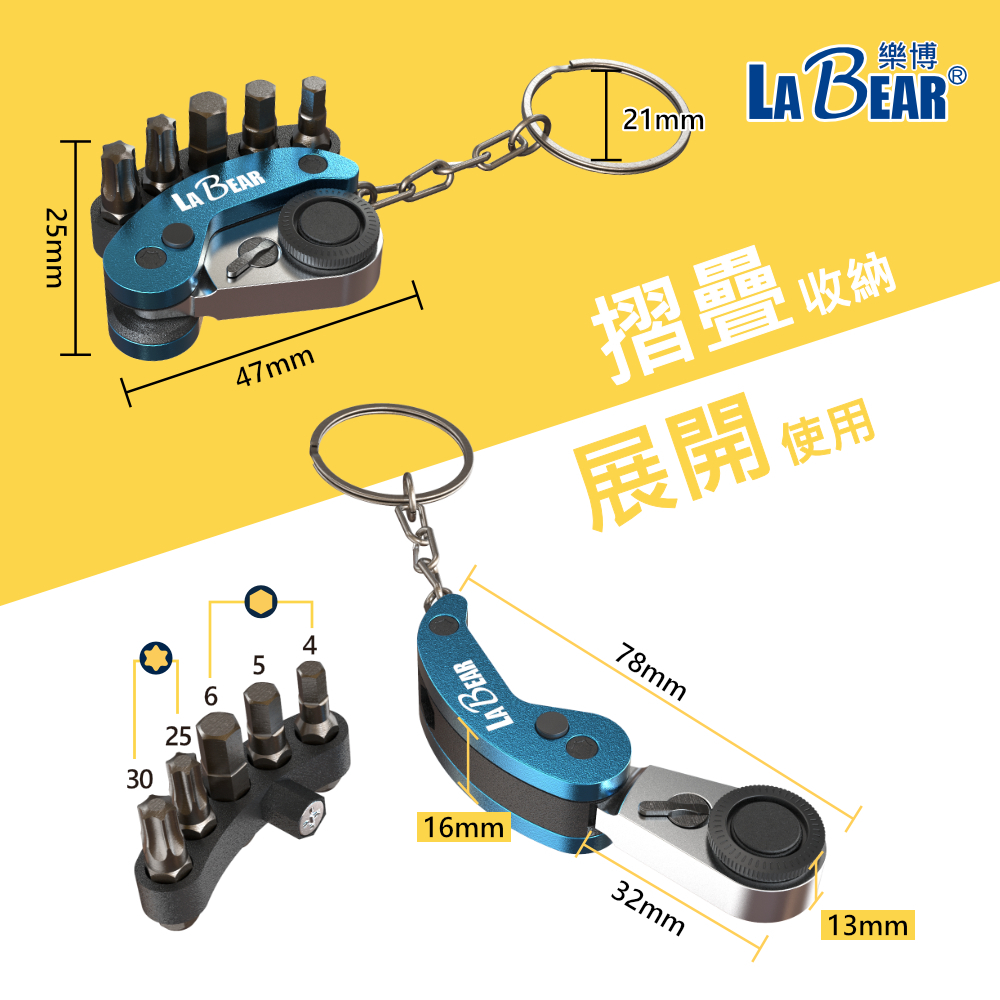 【LaBear】迷你棘輪起子頭鑰匙圈 六角/星型 起子頭組 72齒 摺疊棘輪柄 磁吸式 棘輪鑰匙圈 摺疊鑰匙圈 鑰匙圈紅色🔴迷你摺疊棘輪鑰匙圈|黑色⚫迷你摺疊棘輪鑰匙圈|藍色🔵迷你摺疊棘輪鑰匙圈|綠色🟢迷你摺疊棘輪鑰匙圈|金色🟡迷你摺疊棘輪鑰匙圈ToolsLaBear 樂博工具