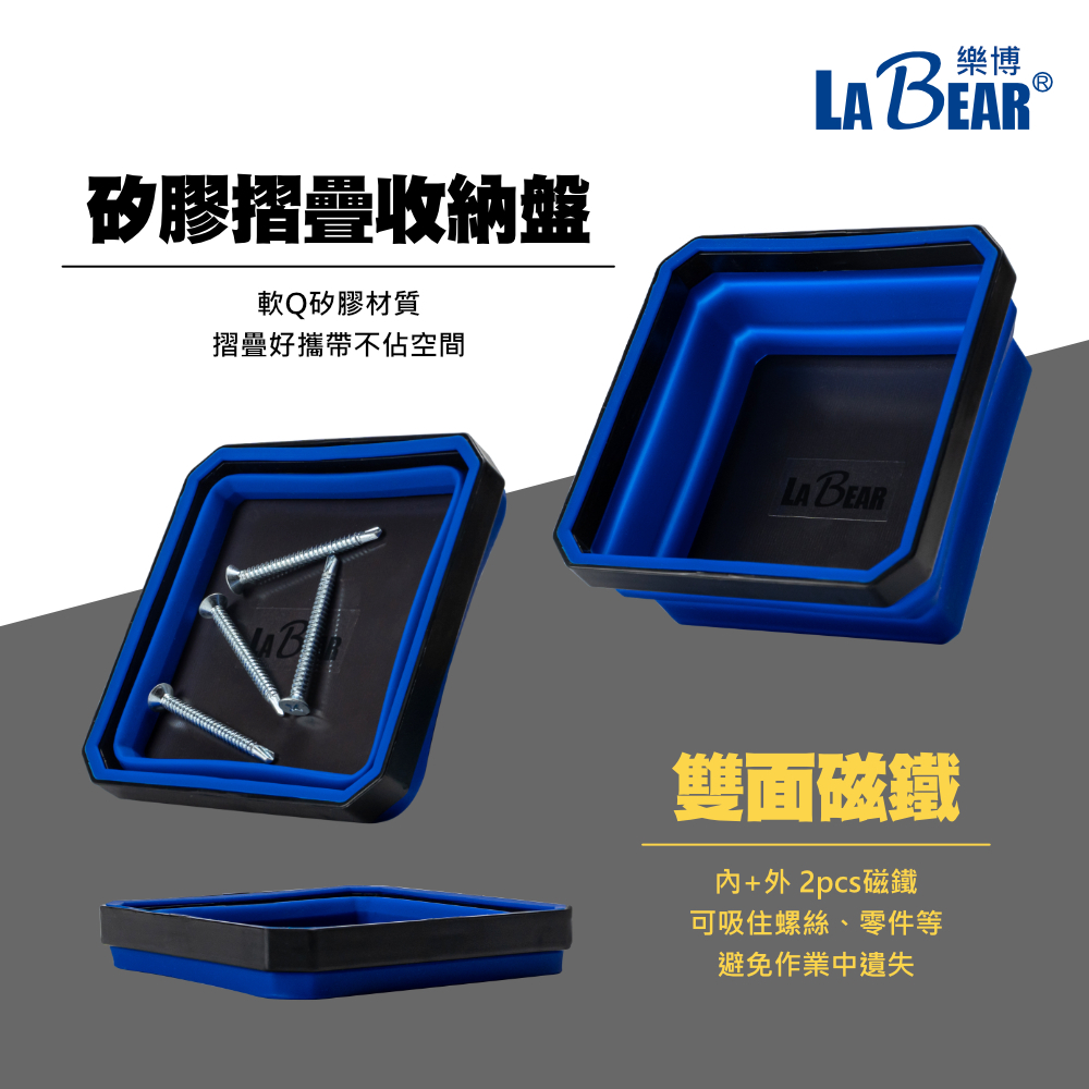 【LaBear】矽膠摺疊磁性收納盤 磁性工具墊 皮革工具墊 磁鐵收納墊 工具盤 零件盤 磁鐵盤 零件碗小正方款-矽膠摺疊 磁性收納盤|(全藍)四折軟墊 磁性工具墊|黑皮革 磁性工具墊|大長方款-矽膠摺疊 磁性收納盤|(大盤+小盤)矽膠工具托盤2件式ToolsLaBear 樂博工具