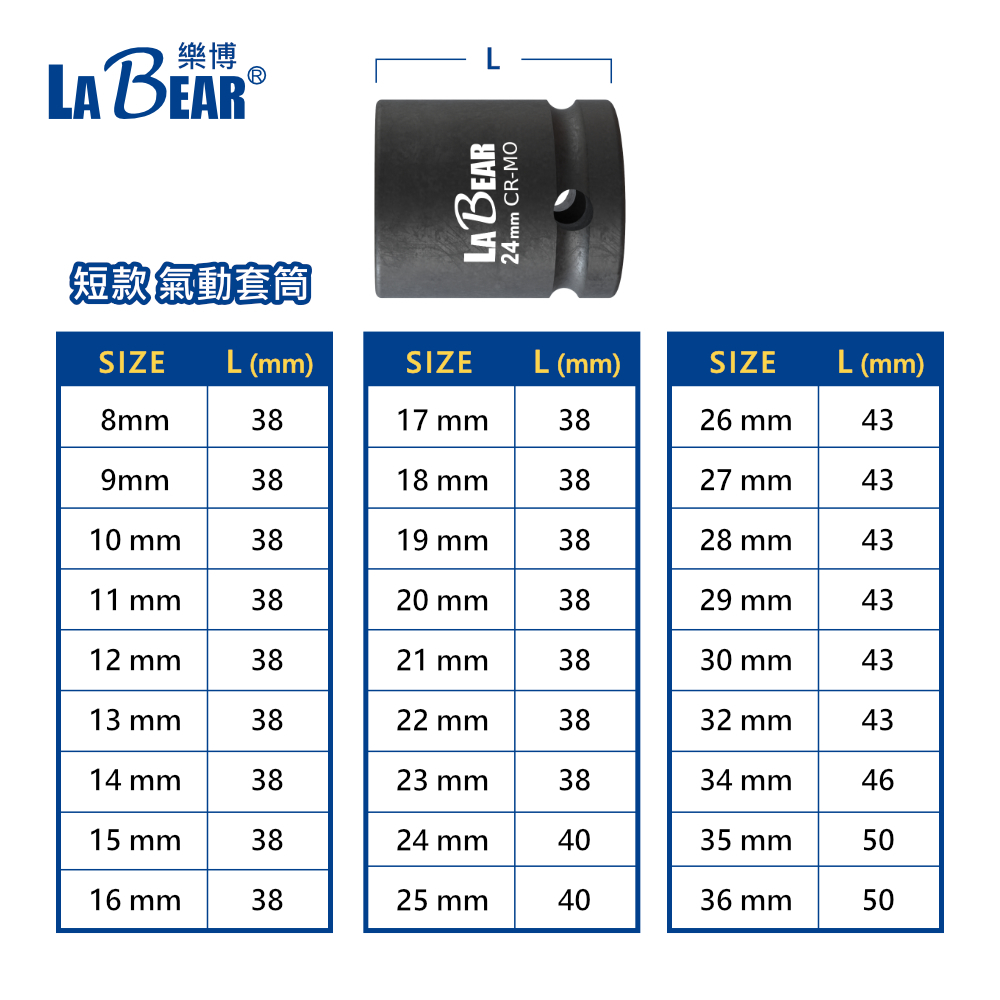 【LaBear】專利止滑氣動套筒 4分 長套筒/短套筒 防滑套筒 氣動六角套筒 8-36mm 鉻鉬鋼 專利設計 台灣製長套筒 (78mmL),8mm|長套筒 (78mmL),9mm|長套筒 (78mmL),10mm|長套筒 (78mmL),11mm|長套筒 (78mmL),12mm|長套筒 (78mmL),13mm|長套筒 (78mmL),14mm|長套筒 (78mmL),15mm|長套筒 (78mmL),16mm|長套筒 (78mmL),17mm|長套筒 (78mmL),18mm|長套筒 (78mmL),19mm|長套筒 (78mmL),20mm|長套筒 (78mmL),21mm|長套筒 (78mmL),22mm|長套筒 (78mmL),23mm|長套筒 (78mmL),24mm|長套筒 (78mmL),25mm|長套筒 (78mmL),26mm|長套筒 (78mmL),27mm|長套筒 (78mmL),28mm|長套筒 (78mmL),29mm|長套筒 (78mmL),30mm|長套筒 (78mmL),32mm|長套筒 (78mmL),34mm|長套筒 (78mmL),35mm|長套筒 (78mmL),36mm|短套筒,無止滑8mm|長套筒 (78mmL),無止滑8mm|短套筒,8mm|短套筒,9mm|短套筒,10mm|短套筒,11mm|短套筒,12mm|短套筒,13mm|短套筒,14mm|短套筒,15mm|短套筒,16mm|短套筒,17mm|短套筒,18mm|短套筒,19mm|短套筒,20mm|短套筒,21mm|短套筒,22mm|短套筒,23mm|短套筒,24mm|短套筒,25mm|短套筒,26mm|短套筒,27mm|短套筒,28mm|短套筒,29mm|短套筒,30mm|短套筒,32mm|短套筒,34mm|短套筒,35mm|短套筒,36mmAir Pumps, Parts & AccessoriesLaBear 樂博工具