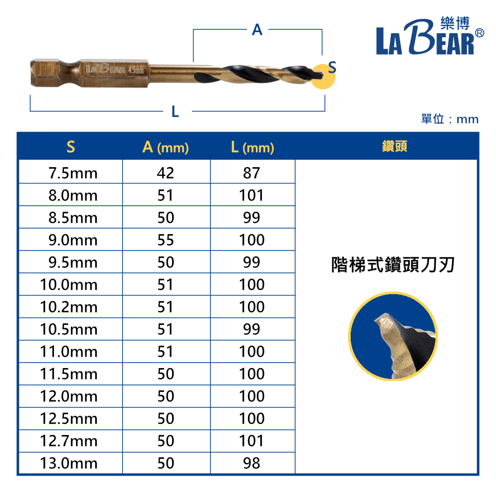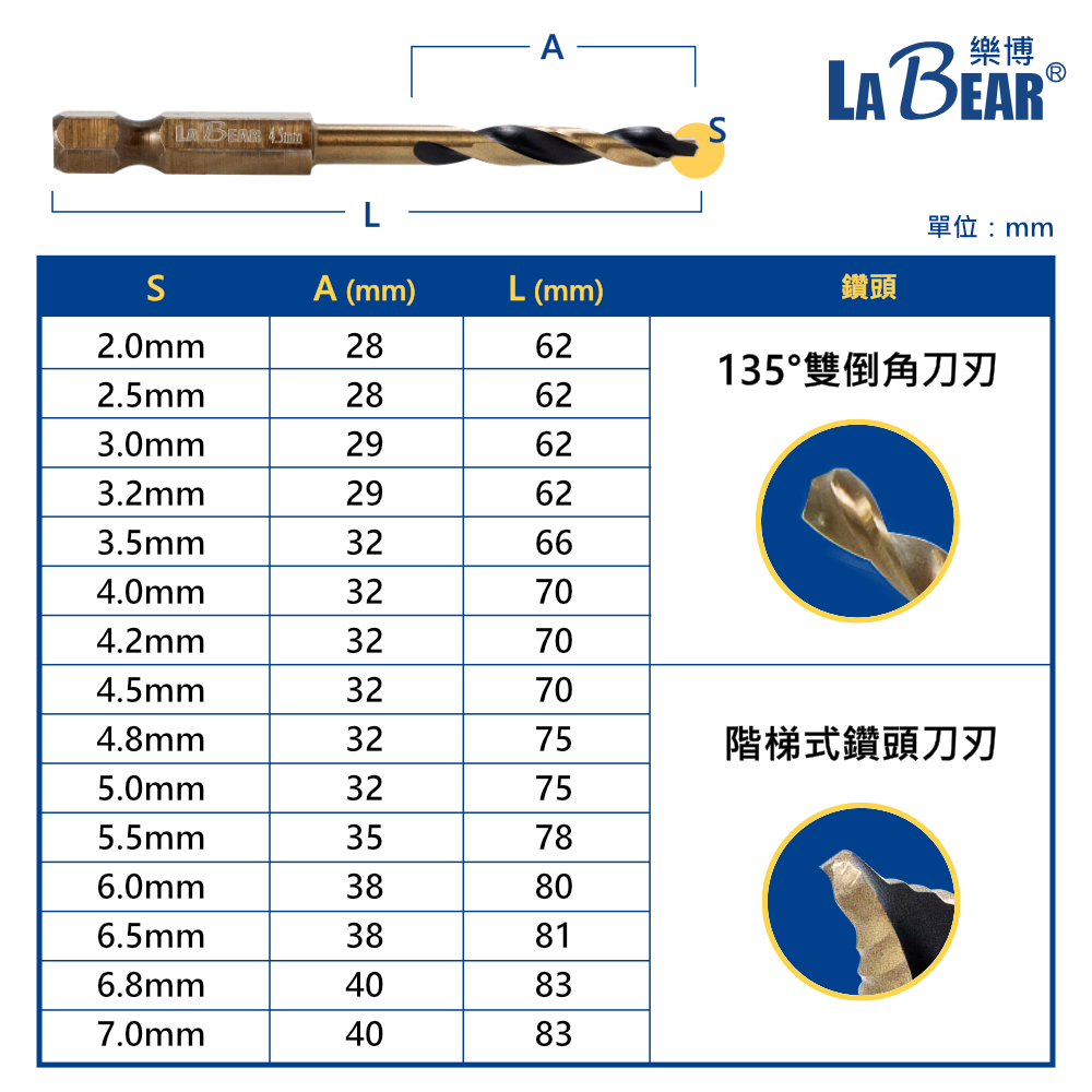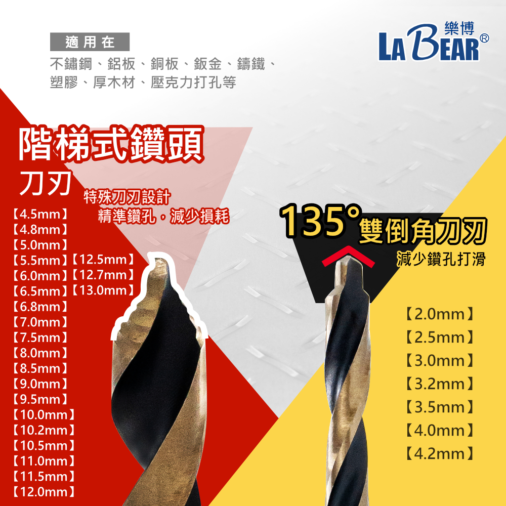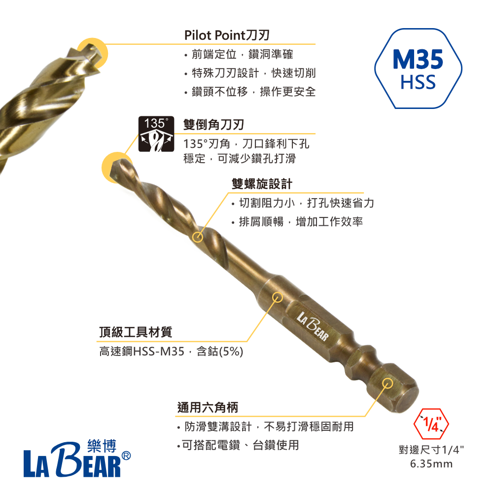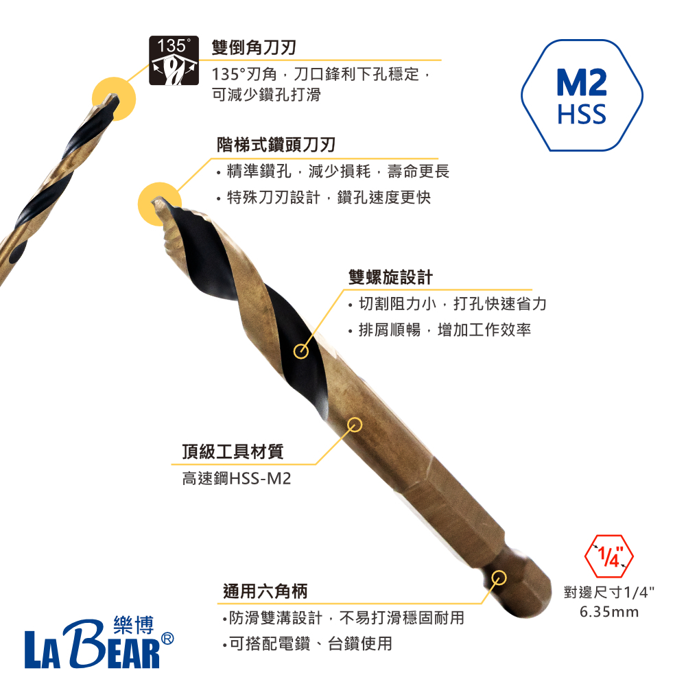 【LaBear】新款階梯刃麻花鑽 含鈷麻花鑽 M35含鈷鑽頭 六角柄麻花鑽 高速鋼M35 不鏽鋼開孔器 2mm-13mm舊款金色4.2mm|舊款金色4.8mm|舊款金色6.5mm|舊款金色6.0mm|舊款金色12.0mm|新款金色10.2mm|新款金色10.5mm|新款金色11m|新款金色11.5m|新款金色12mm|新款金色12.5m|新款金色12.7mm|新款金色13mm|舊款金色11.0mm|舊款金色12.7mm|新款金色2.0mm|新款金色2.5mm|新款金色3.0mm|新款金色3.2mm|新款金色3.5mm|新款金色4.0mm|新款金色4.2mm|新款金色4.5mm|新款金色4.8mm|新款金色5.0mm|新款金色5.5mm|新款金色6.0mm|新款金色6.5mm|新款金色6.8mm|新款金色7.0mm|新款金色7.5mm|新款金色8mm|新款金色8.5mm|新款金色9mm|新款金色9.5mm|新款金色10mmToolsLaBear 樂博工具