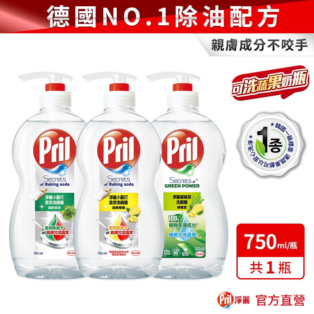 【Pril淨麗】小蘇打高效/植純萃洗碗精750ml 去油(除油)去漬小蘇打_草本|小蘇打_檸檬|植純萃檸檬草Cleaning AgentsHenkel漢高旗艦店-Persil寶瀅/Pril洗碗精/Bref馬桶球/威滅