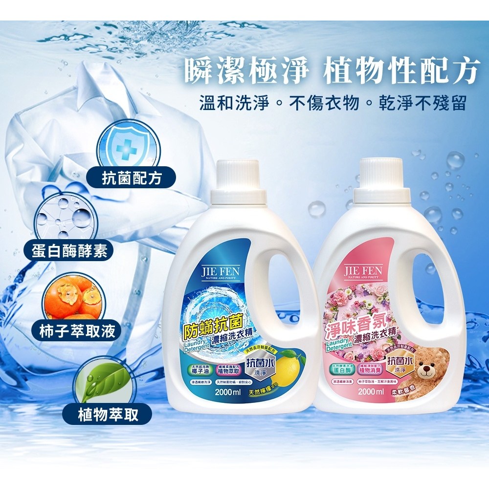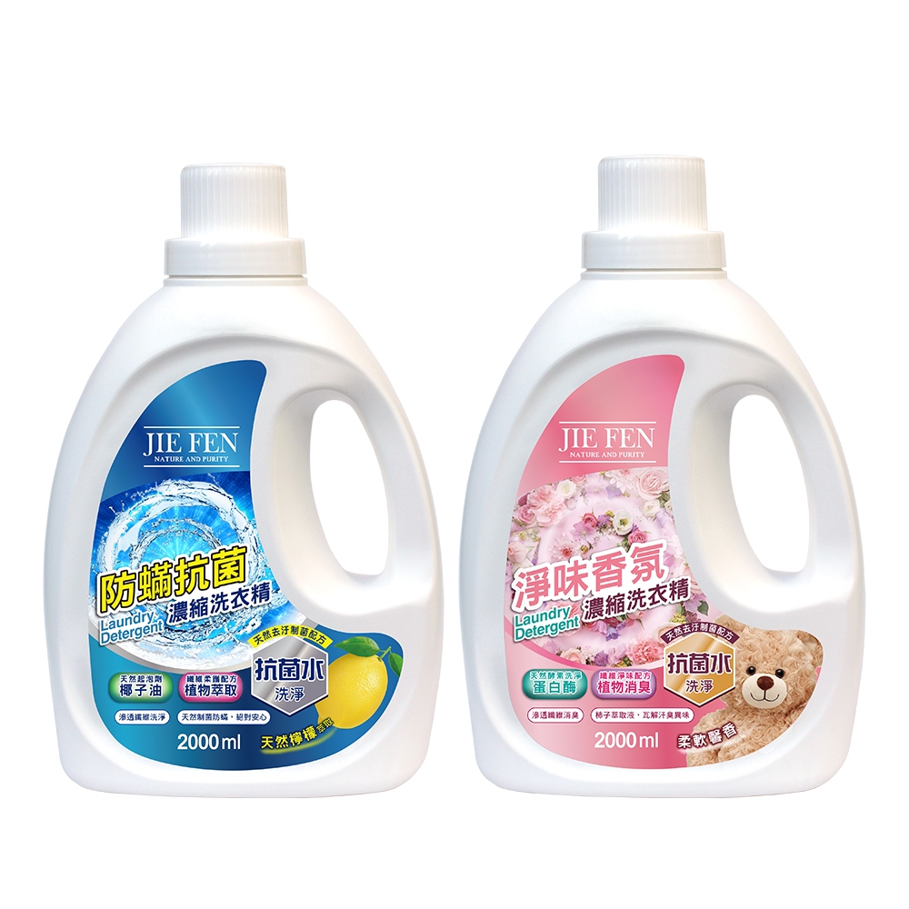 【Jie Fen 潔芬】香氛濃縮洗衣精 2000ml|抗菌防蟎・舒適淨味・全家適用・室內晾衣防螨抗菌洗衣精+淨味香氛洗衣精(各1)|防螨抗菌濃縮洗衣精X2|淨味香氛濃縮洗衣精X2|防螨抗菌濃縮洗衣精2000ml(檸檬)|淨味香氛濃縮洗衣精2000ml(馨香)Laundry CareJie Fen潔芬官方旗艦店