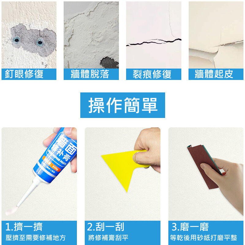 牆面修補膏-白色 釘眼裂縫修復 填縫劑 翻修膏 補牆膏【DG374】牆面修補膏-白色 釘眼裂縫修復 填縫劑 翻修膏 補牆膏【DG374】Wall Paints & CoatingsJOLIN久林批發~台灣出貨~滿50再結帳~