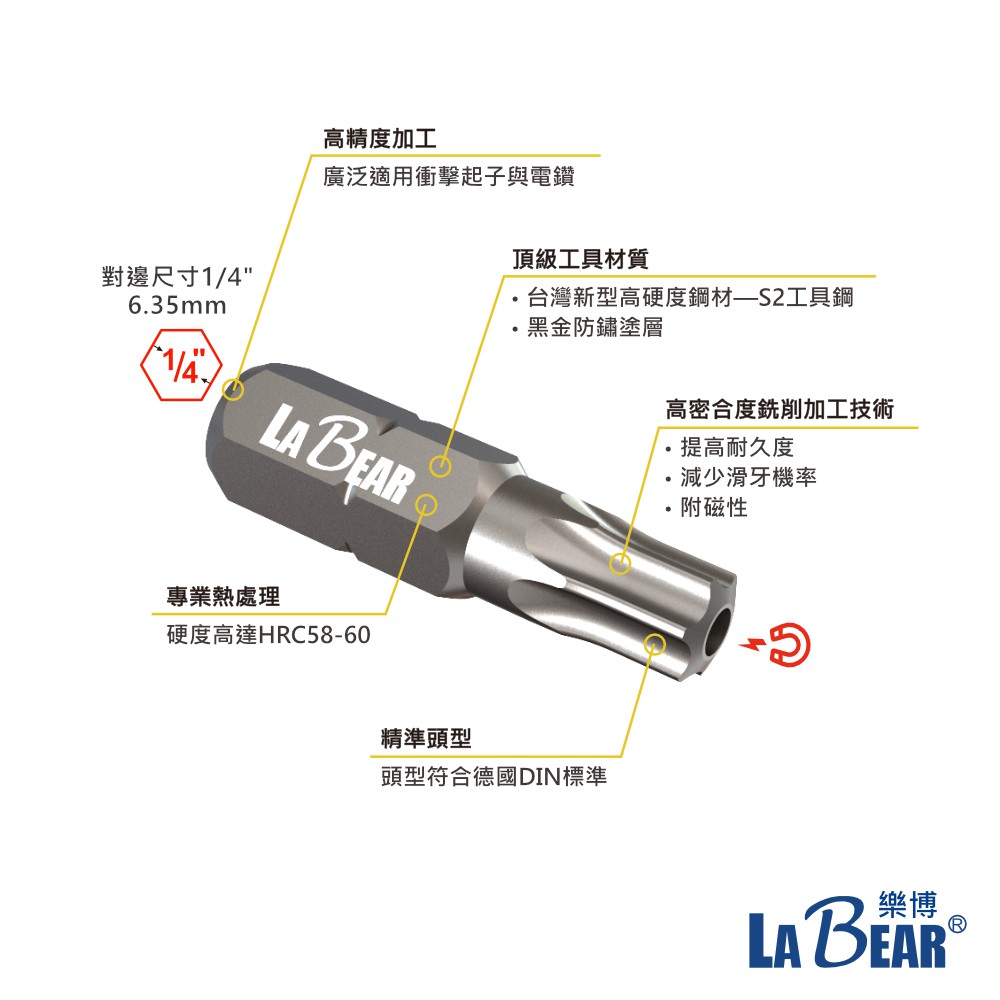 【LaBear】1/4″ 星型帶孔起子頭 V型溝 25mm 星型帶孔批頭 梅花中孔批頭 台灣製星型帶孔 T7|星型帶孔 T8|星型帶孔 T9|星型帶孔 T10|星型帶孔 T15|星型帶孔 T20|星型帶孔 T25|星型帶孔 T27|星型帶孔 T30|星型帶孔 T40|星型帶孔 T45ToolsLaBear 樂博工具