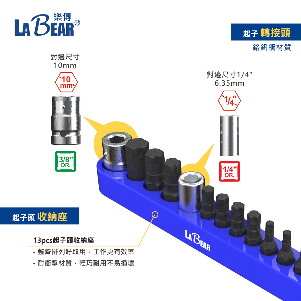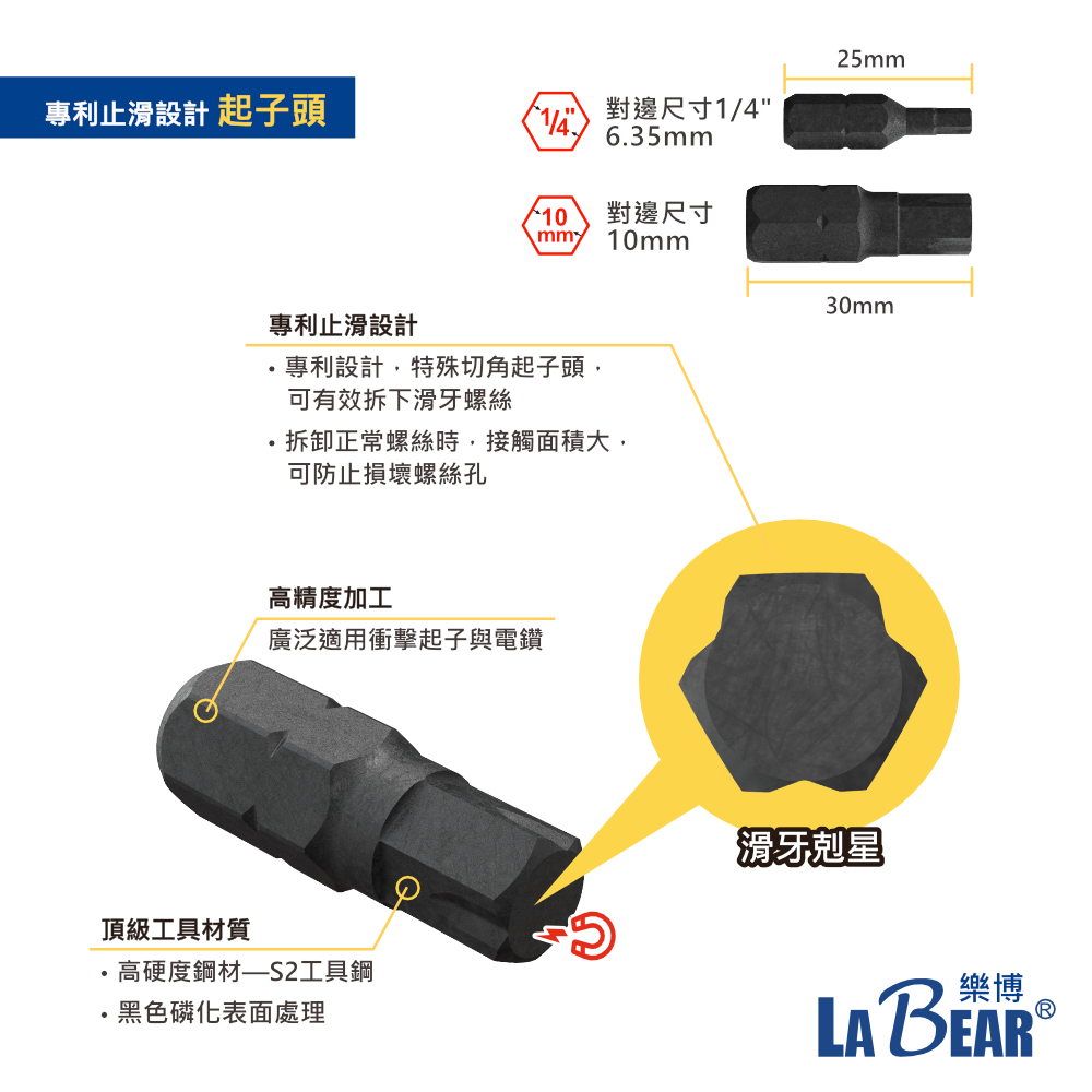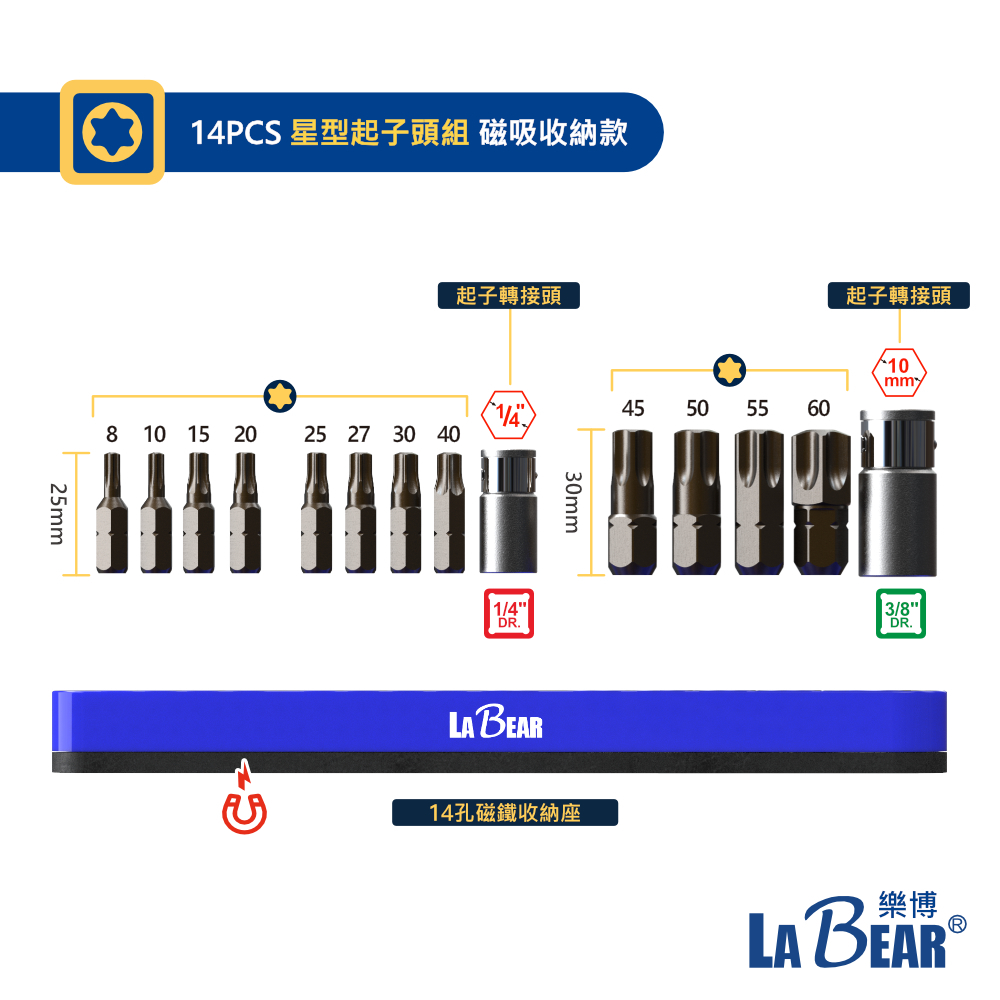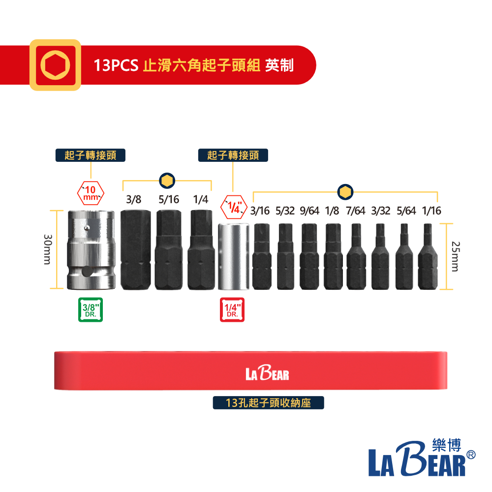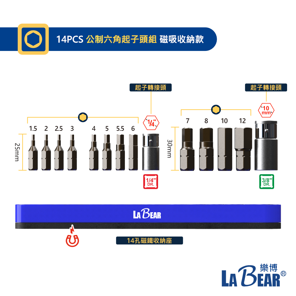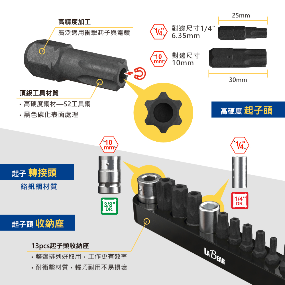 【LaBear】專利設計 止滑六角 起子頭組 1/4″ 10mm 公制/英制 滑牙剋星 星型 磁鐵收納座 起子轉接頭14pcs 星型(磁性收納座)|14pcs 公制六角(磁性收納座.無止滑|13pcs 公制六角(止滑BIT組)|13pcs 英制六角(止滑BIT組)|13pcs 星型帶孔起子頭組ToolsLaBear 樂博工具