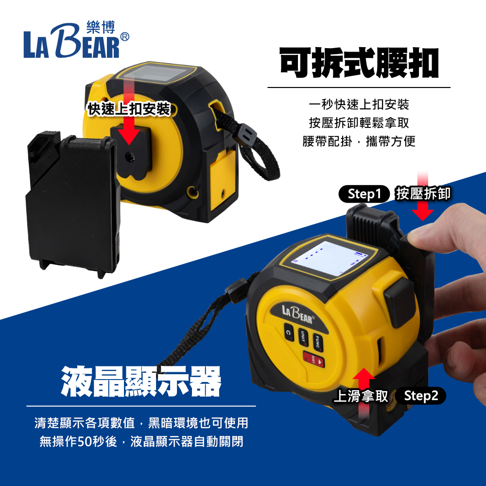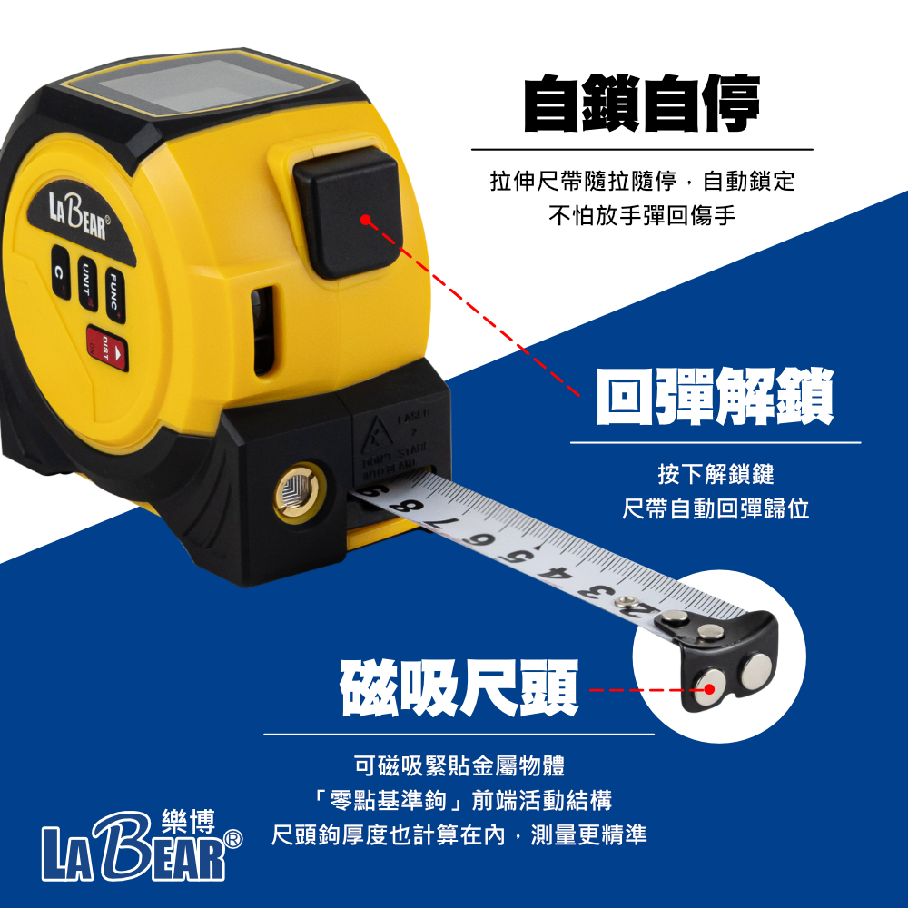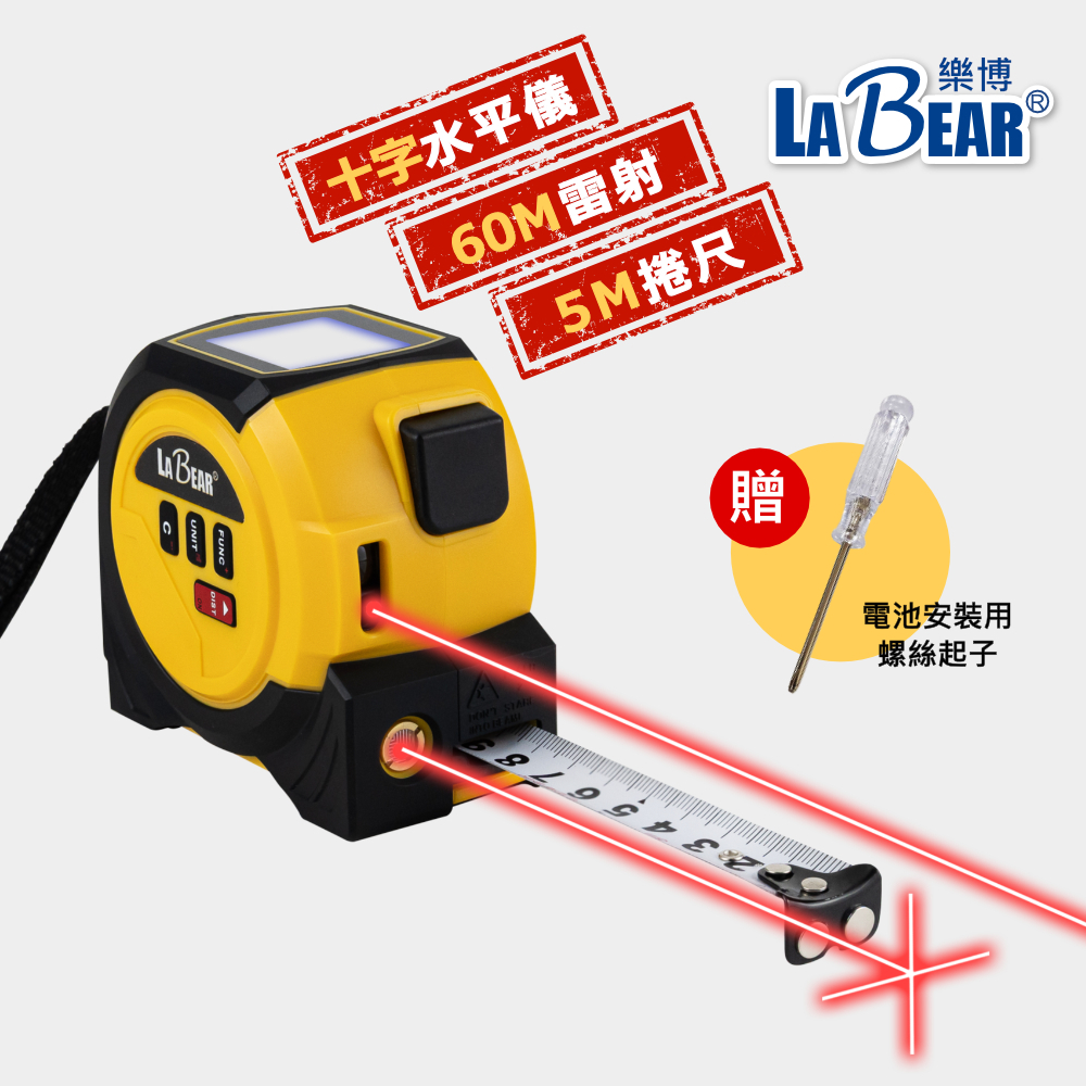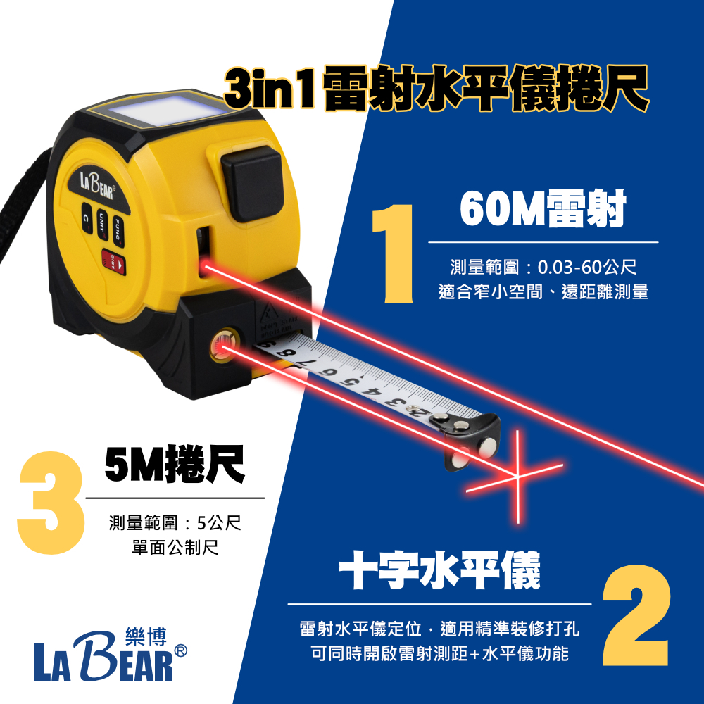 【LaBear】3in1雷射水平儀捲尺 十字水平儀 5M捲尺 60M雷射 雷射測距 自鎖捲尺 電子測距儀3in1雷射測距/水平儀/捲尺ToolsLaBear 樂博工具