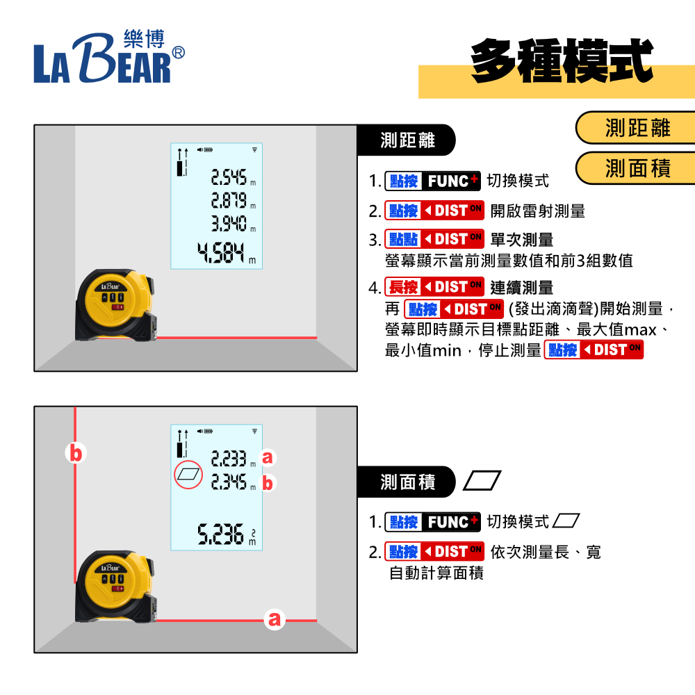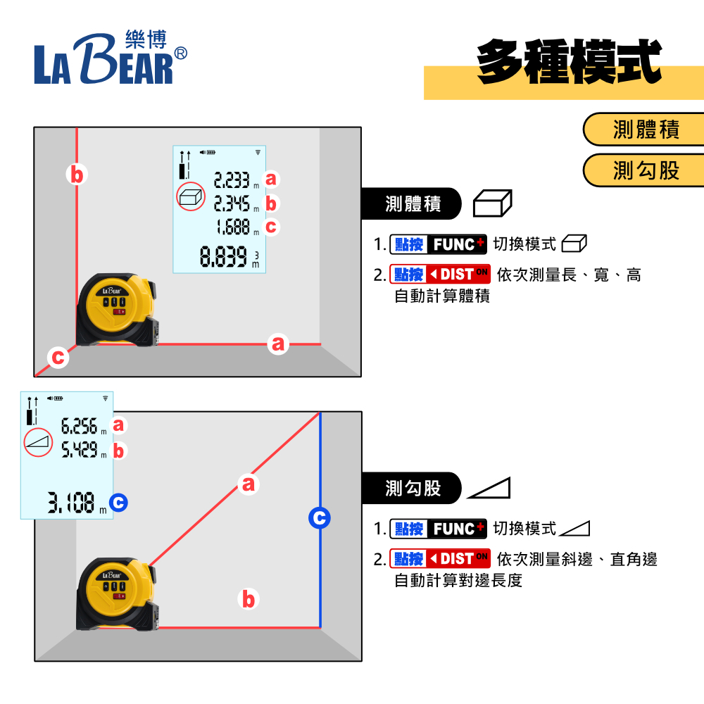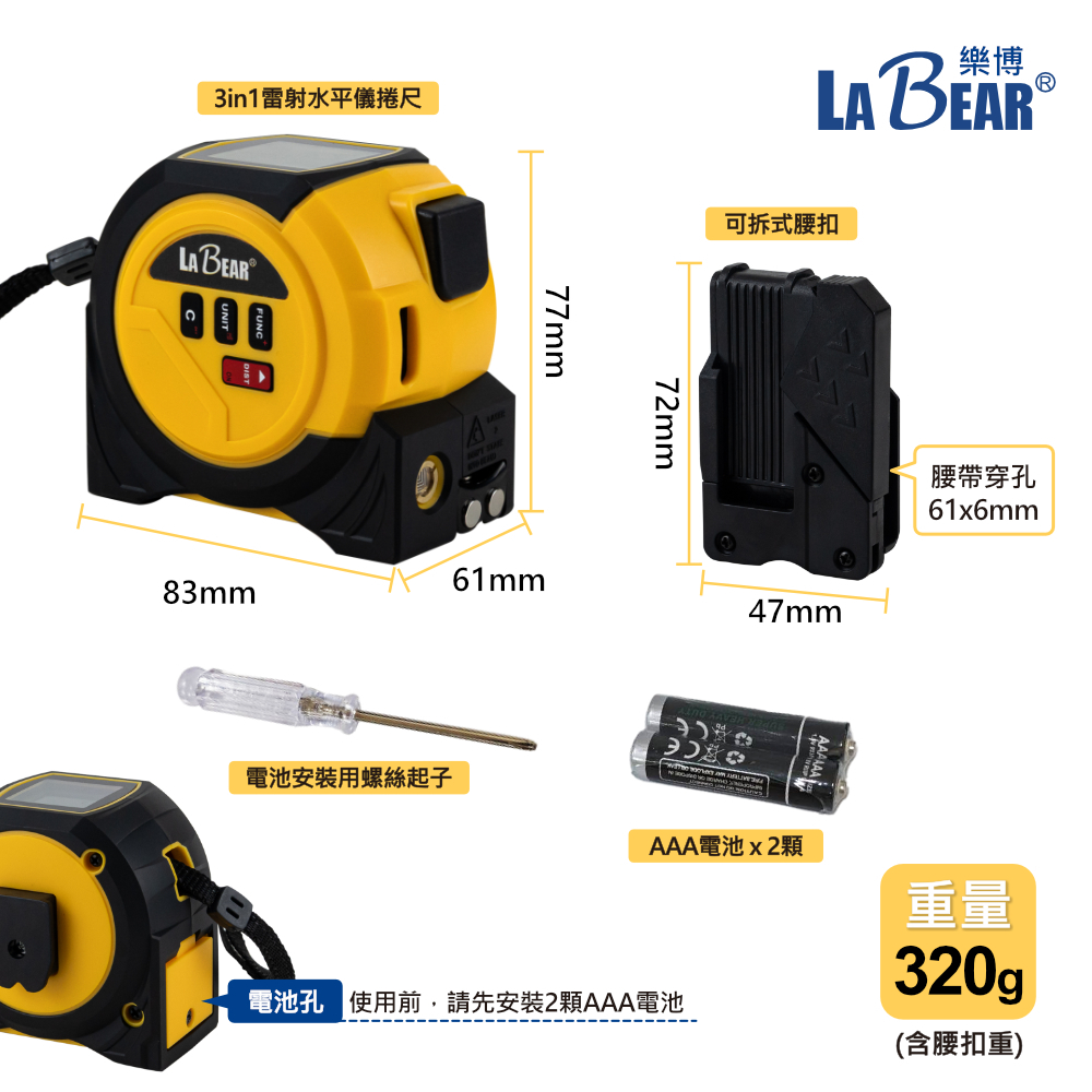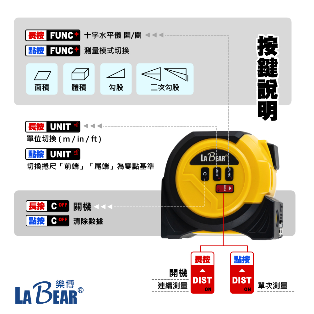 【LaBear】3in1雷射水平儀捲尺 十字水平儀 5M捲尺 60M雷射 雷射測距 自鎖捲尺 電子測距儀3in1雷射測距/水平儀/捲尺ToolsLaBear 樂博工具