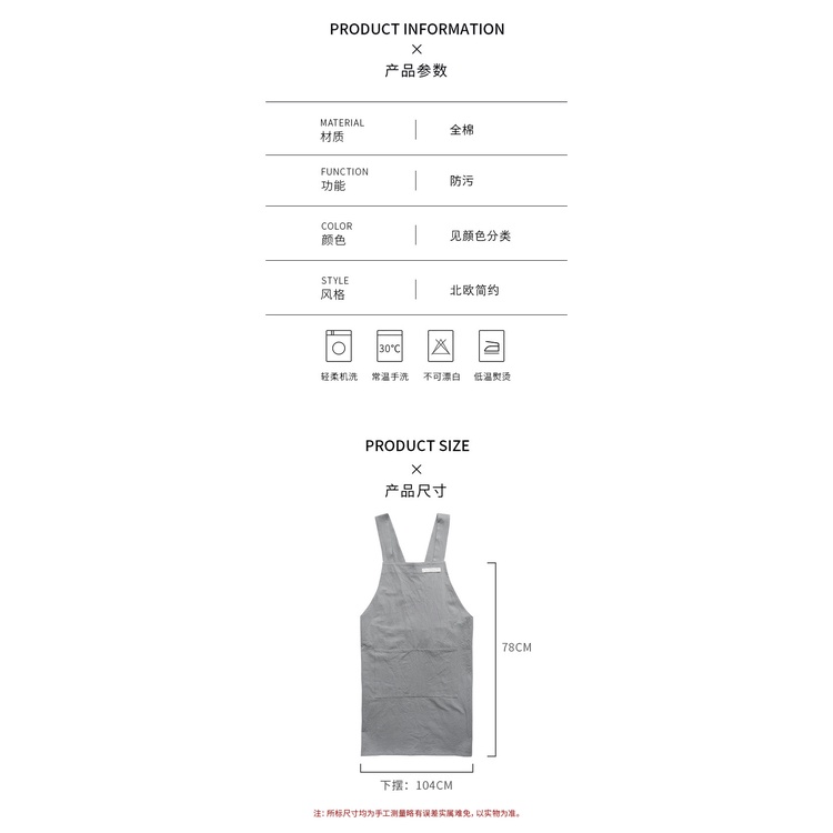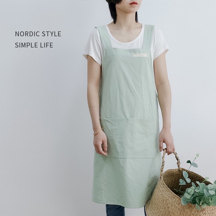 日韓簡約棉麻廚房烘焙背心圍裙淡綠色|粉色|灰色|黑色|綻藍色|淡藍色|綠色Aprons & Kitchen GlovesI-search愛奢侈親子裝時尚生活館