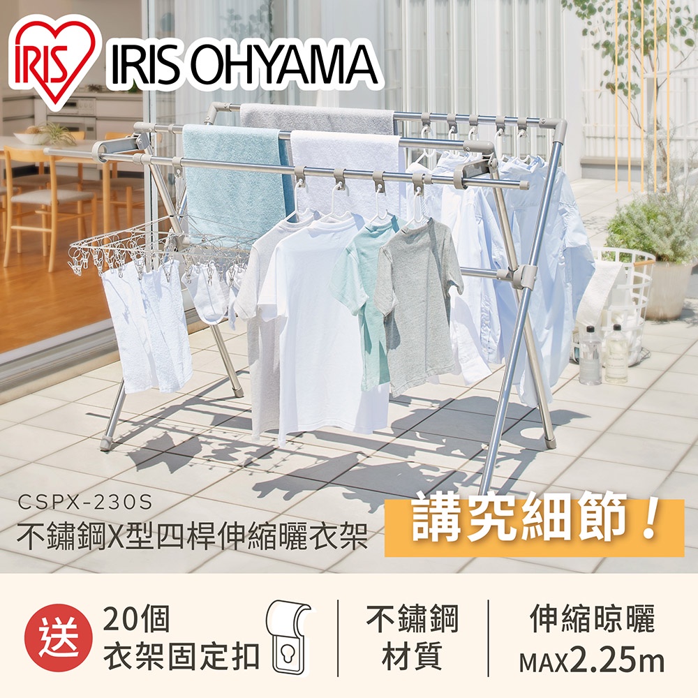IRIS OHYAMA 不鏽鋼X型四桿伸縮曬衣架 CSPX-230S (梅雨幫手/租屋族可用/室內室外)CSPX-230SClotheslines & Drying RacksIRIS OHYAMA 台灣愛麗思歐雅瑪