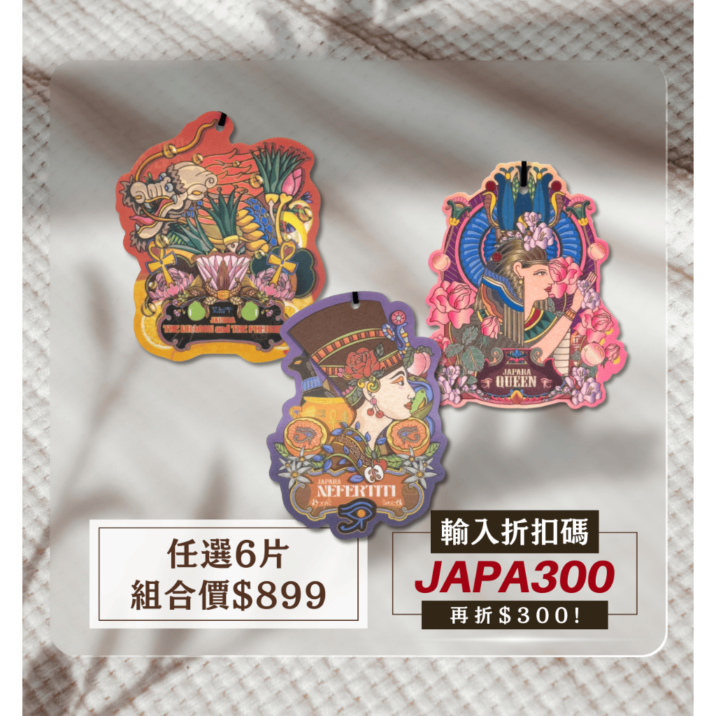 泰國【JAPARA】埃及香氛片 輸入折扣碼【JAPA300】折$300 車用香氛 室內香氛 香薰片 香片女神-JAPARA|自我審判-ONESELF|奈赫貝特-NEKHBET|皇后-QUEEN|國王-KING|黑玫瑰-BLACK ROSE|尼羅河之花-LOTUS OF NILE|娜芙蒂蒂-NEFERTITI|安東尼之戀-ANTHONY’S LOVE|海市蜃樓-MIRAGE|龍鳳-DRAGON & PHOENIX|沙漠的秘密-SECRET&DESERTOthersJAPARA官方旗艦店
