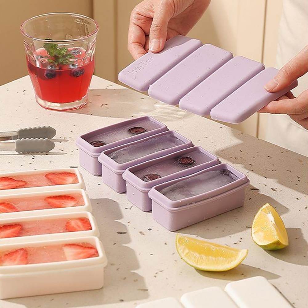 硅膠帶蓋製冰盒 YF5580 製冰盒 製冰格 冰盒 冰格 冰塊盒 長條冰塊 冰塊模具白色|黃色|紫色|綠色Food StorageGood Go 好好買