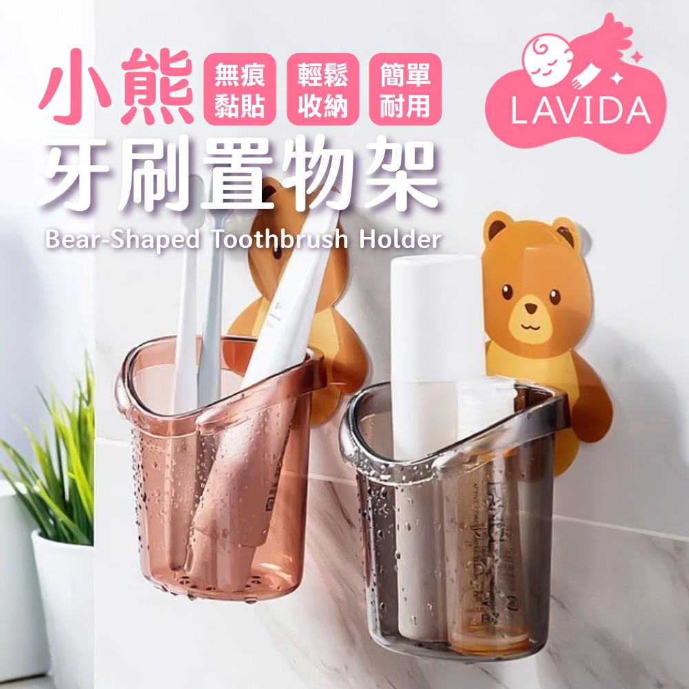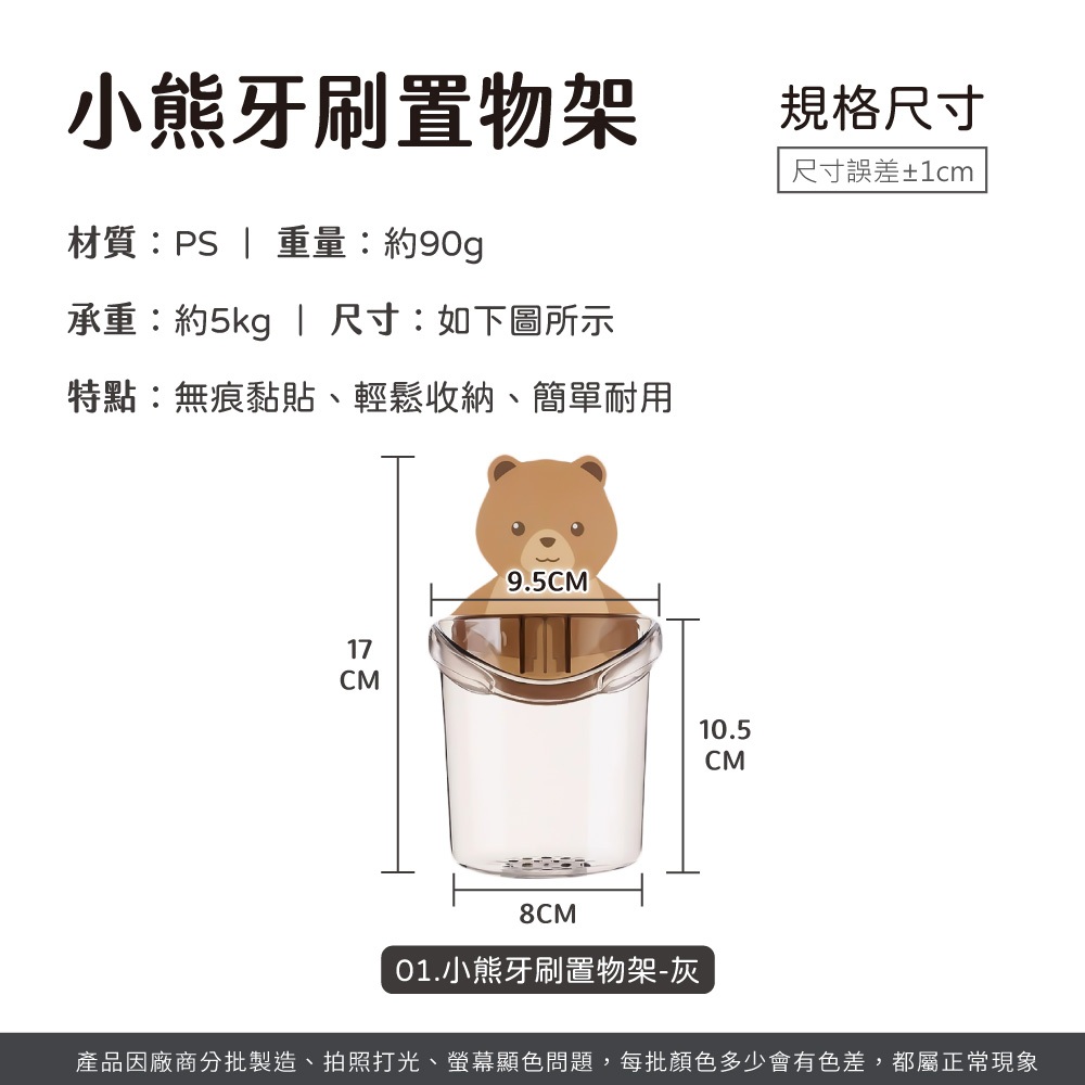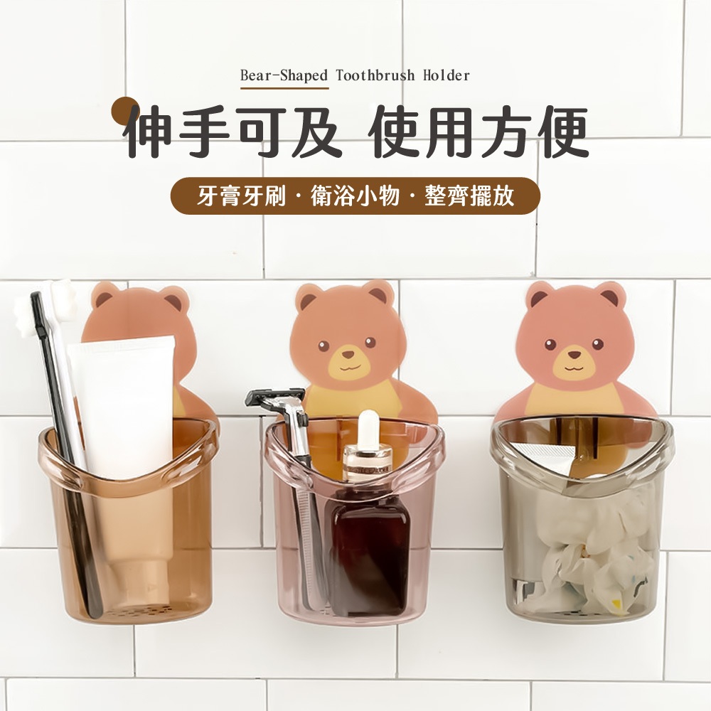 小熊牙刷置物架 壁掛式收納桶 小熊置物架 小熊收納筒 雜物整理盒 壁掛收納盒 收納筒 置物架 牙刷架灰色|xxToothbrush Holders & Toothpaste DispensersLAVIDA 育兒好好玩!