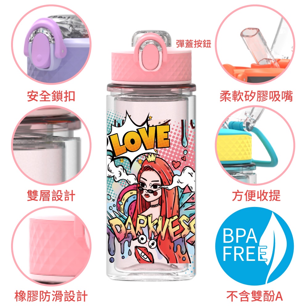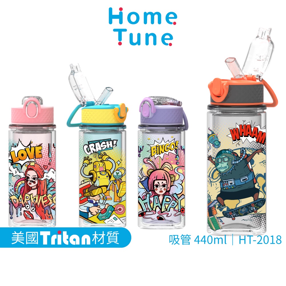 Home Tune家音 鎖扣彈蓋吸管式雙層水壺-440ml|兒童水壺運動水壺冷水壺透明水壺吸管水壺_HT-2018