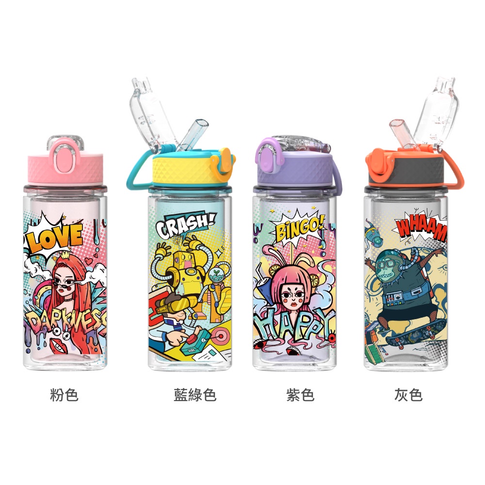 Home Tune家音 鎖扣彈蓋吸管式雙層水壺-440ml|兒童水壺運動水壺冷水壺透明水壺吸管水壺_HT-2018粉色|藍綠色|紫色|灰色OthersHome Tune家音