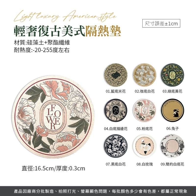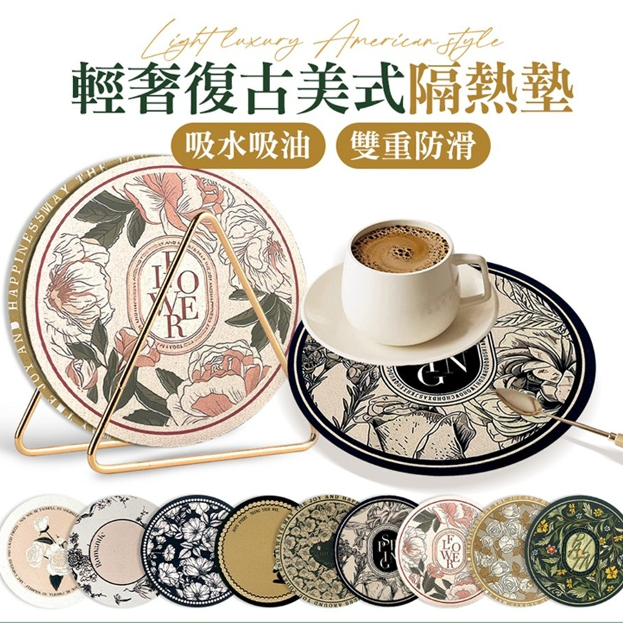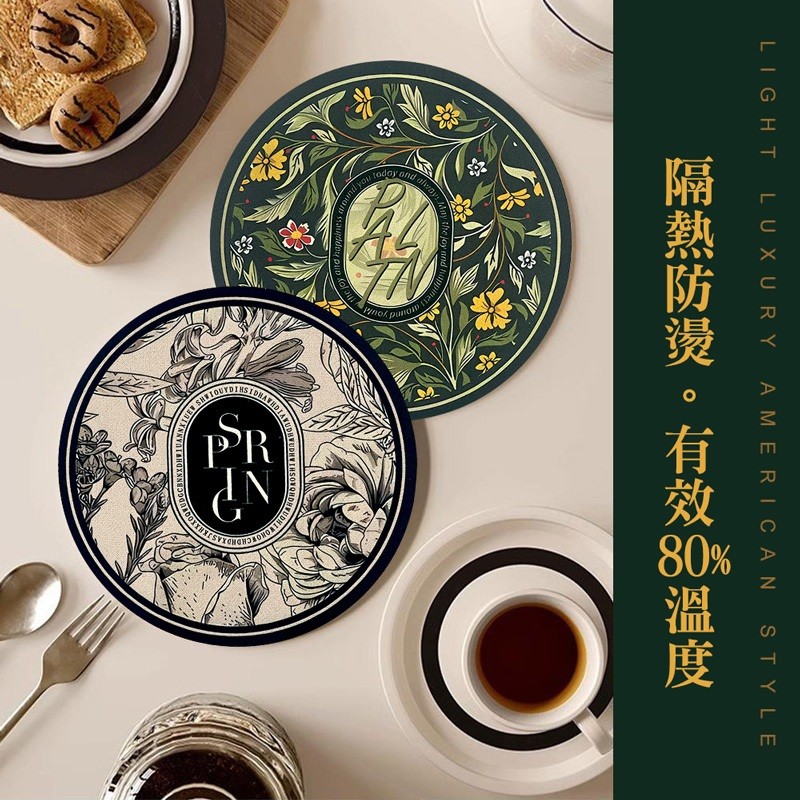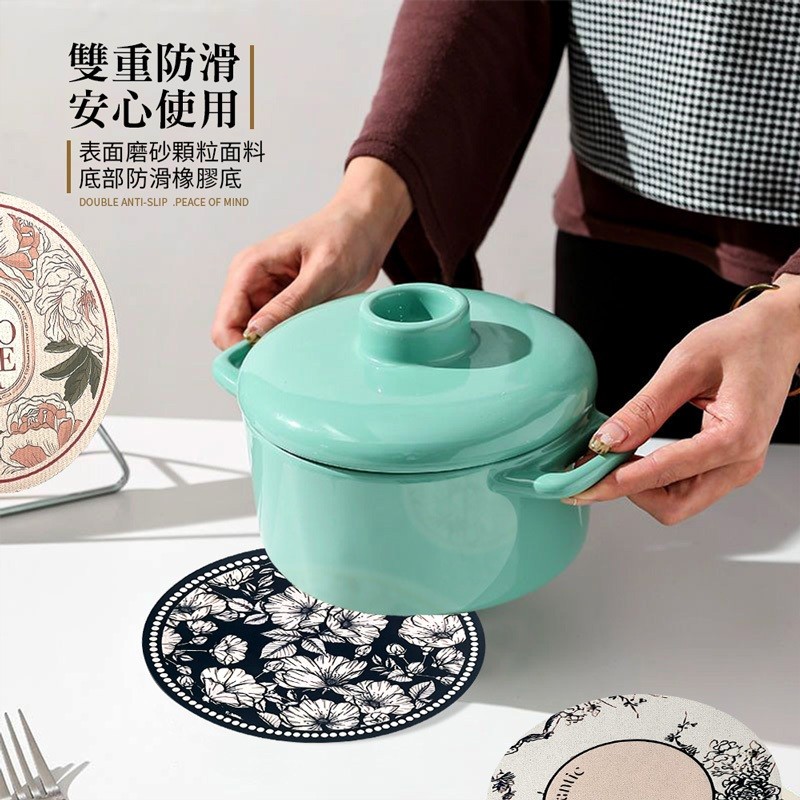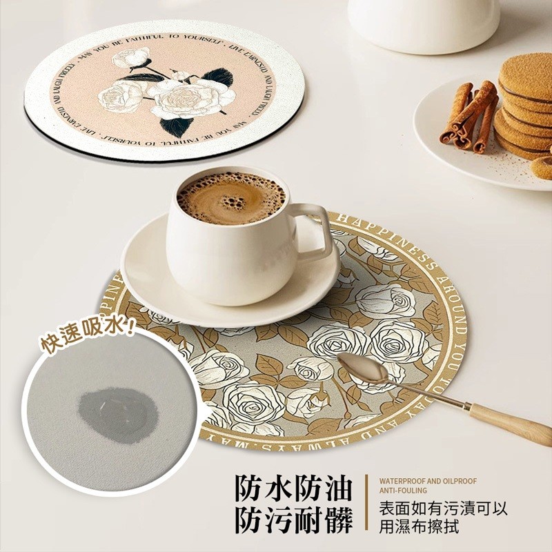 【LAVIDA嚴選】圓形隔熱墊 美式復古餐桌墊 防水防油隔熱墊 精緻輕奢餐墊 硅藻土墊 吸水墊 杯墊 桌墊 鍋墊 防燙墊01.藍底米花|02.咖底白花|03.綠底黃花|04.白底描邊花|05.粉底花|06.兔子|07.黑底白花|08.白玫瑰|09.簡約白底花Placemats & CoastersLAVIDA 育兒好好玩!