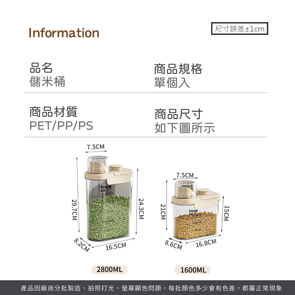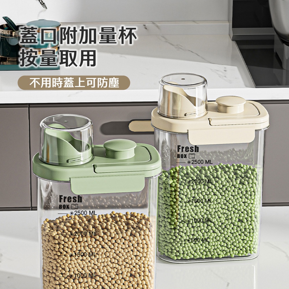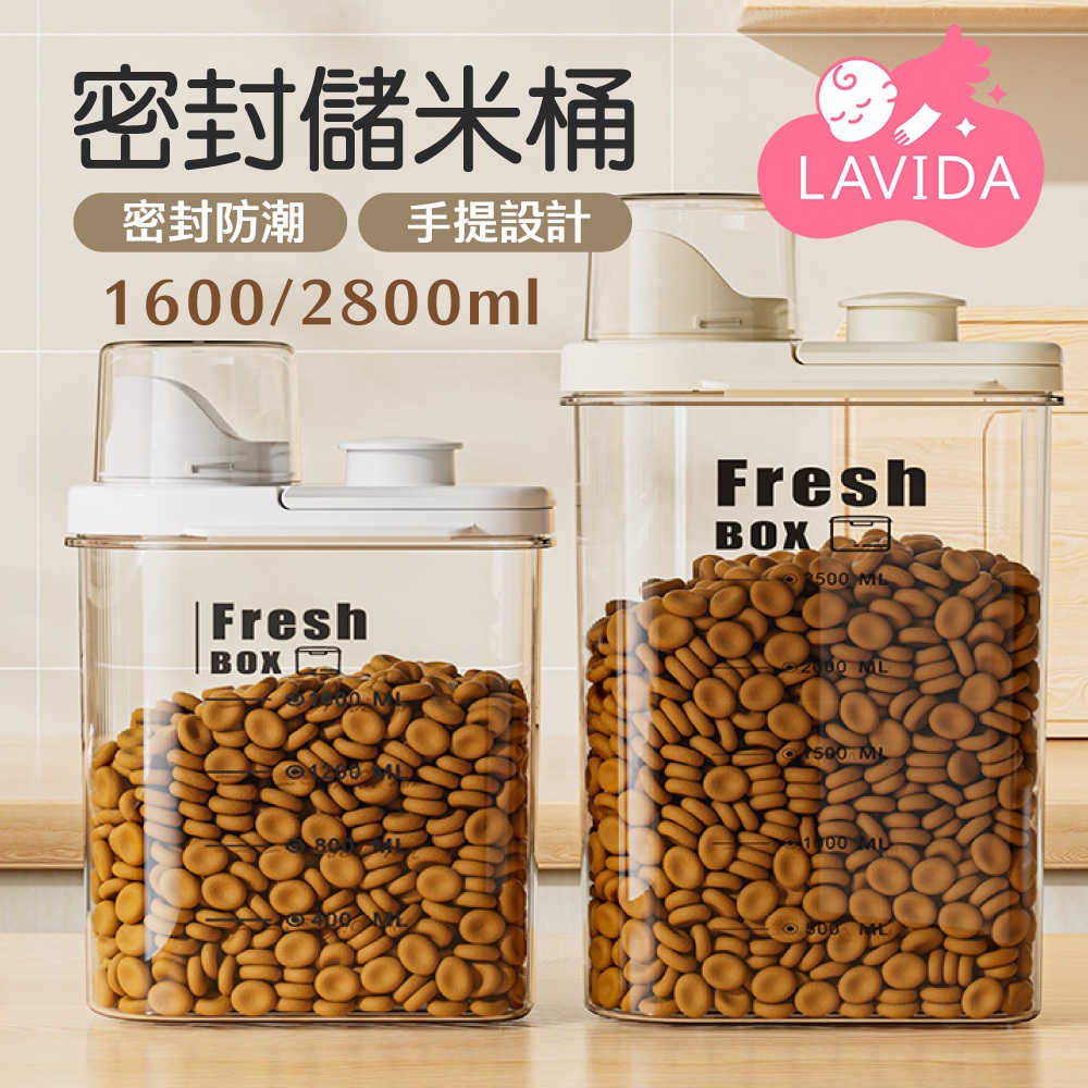 【LAVIDA嚴選】儲米桶 量杯密封罐 密封罐 防潮罐 五穀雜糧罐 收納罐 雜糧罐 米桶 飼料密封桶 儲物罐01.奶油色1.6L|02.奶油色2.8LFood StorageLAVIDA 育兒好好玩!