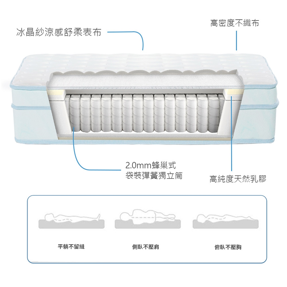 【H&D東稻家居】厚眠床墊︱適中偏硬-ICEQ涼感蜂巢Q彈乳膠硬式床墊/單人床墊/雙人床墊/加大床墊/歐規款單人3.5尺(105*188*26CM)|雙人5尺(150*188*26CM)|加大6尺(180*188*26CM)|特大7尺(180*212*26CM)|3.5尺加長(105*200*26CM)|5尺加長(150*200*26CM)|6尺加長(180*200*26CM)MattressesH&D東稻家居