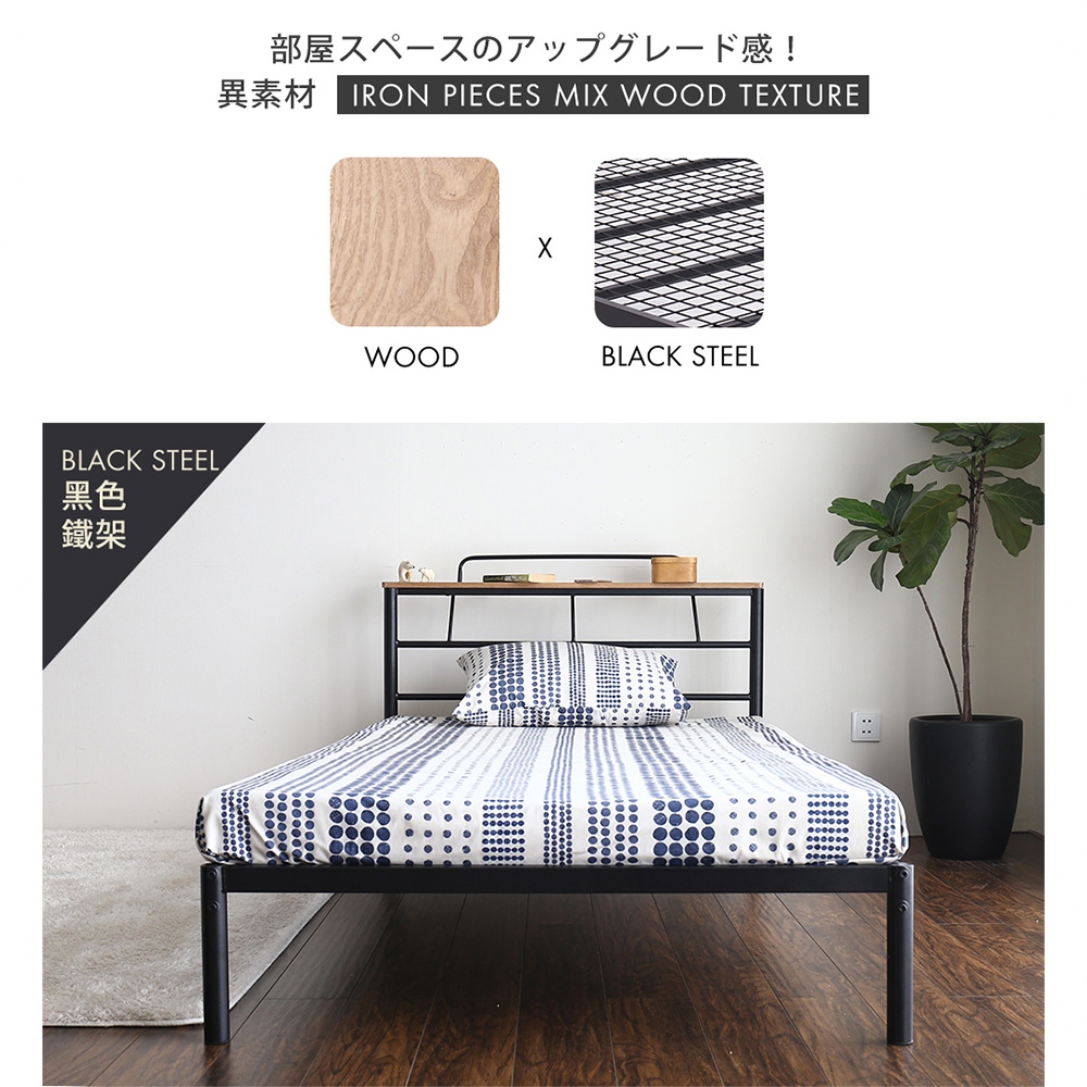 【H&D東稻家居】日系工業風單人3.5尺床架/鐵床架(附USB插座)【HXC-M940】黑色Bed Frames & HeadboardsH&D東稻家居