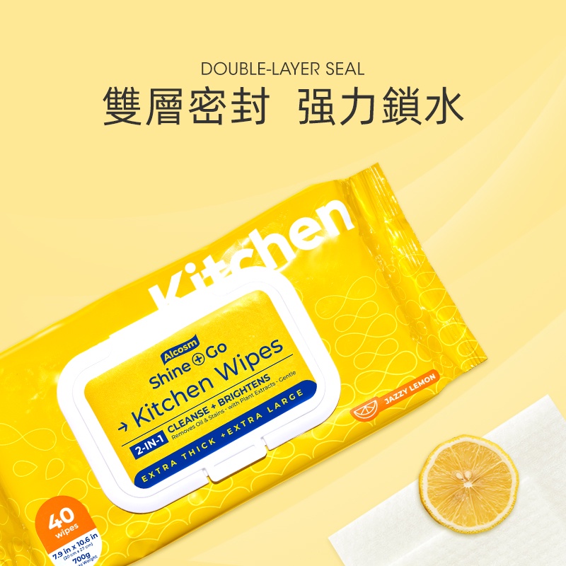 Alcosm廚房去污濕紙巾40抽 高去油&除臭廚房濕巾 居家清潔 廚房專用清潔紙巾拋棄式 清潔抹布40抽×1包|40抽×2包Tissue & Paper TowelsHoppi 官方旗艦店