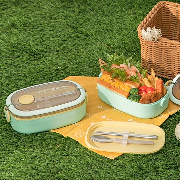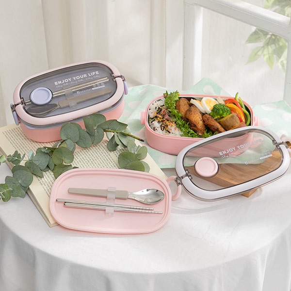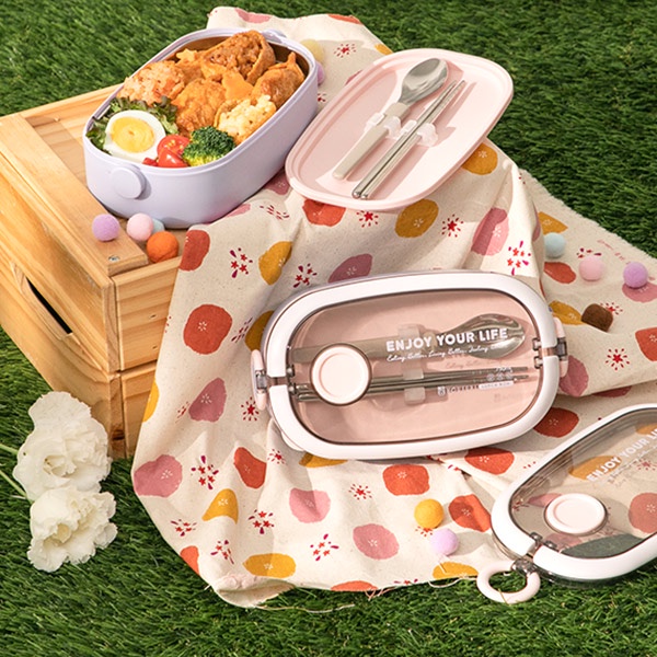 【HOUSUXI官方旗艦】不鏽鋼好提便當盒-附餐具750ml(共四色)淺粉|水藍|湖綠|粉紫Food StorageHOUSUXI 舒希官方旗艦店