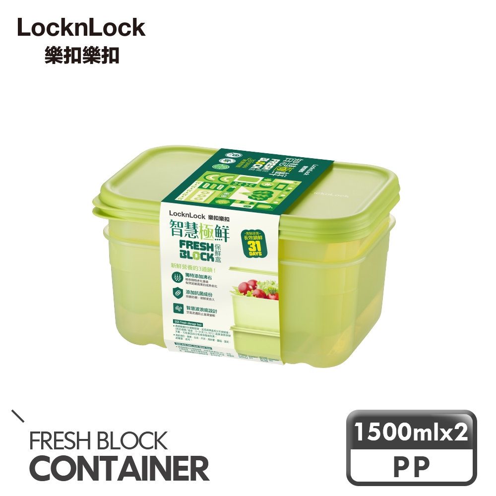 【樂扣樂扣】智慧極鮮Fresh Block保鮮盒1500ml/2入組(空氣循環、易保存、添加沸石、延長蔬果新鮮)1500ml/2入組Food StorageLocknLock樂扣樂扣旗艦店